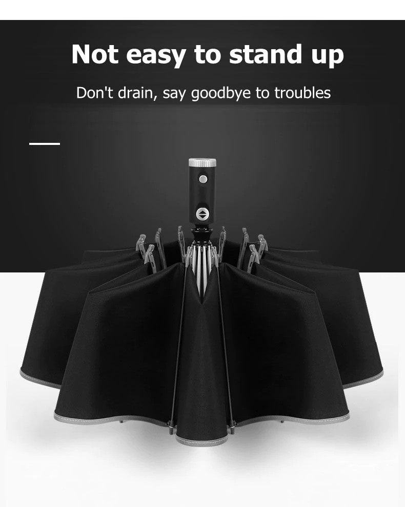 Automatische Paraplu Met Reflecterende Streep Reverse Led Licht Paraplu Drie Vouwen Omgekeerde 10 Ribben Winddicht Paraplu Reizen