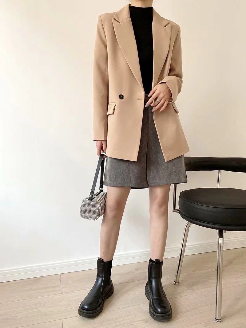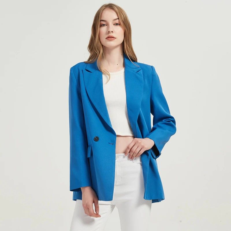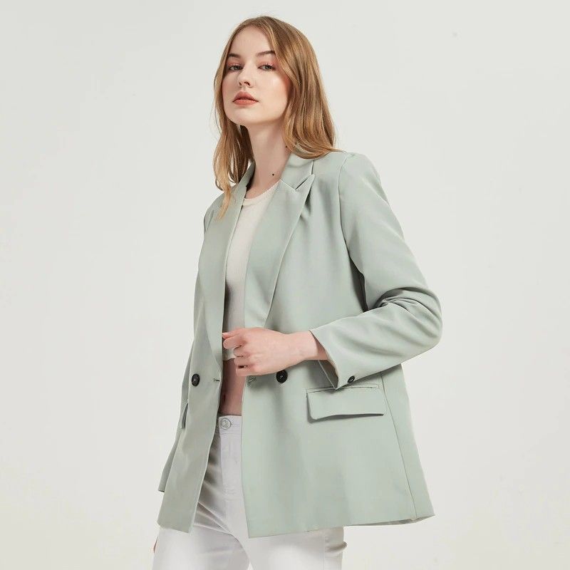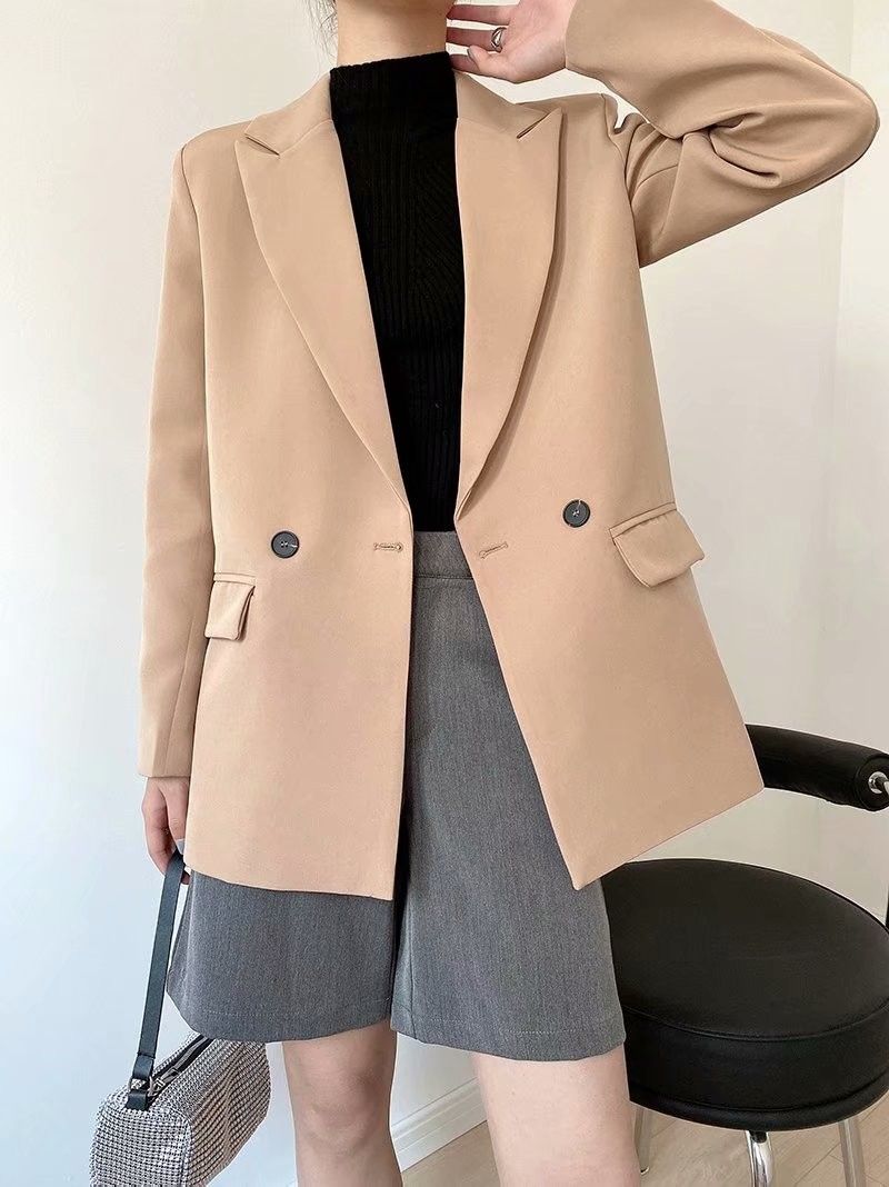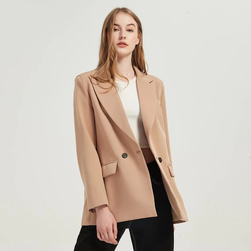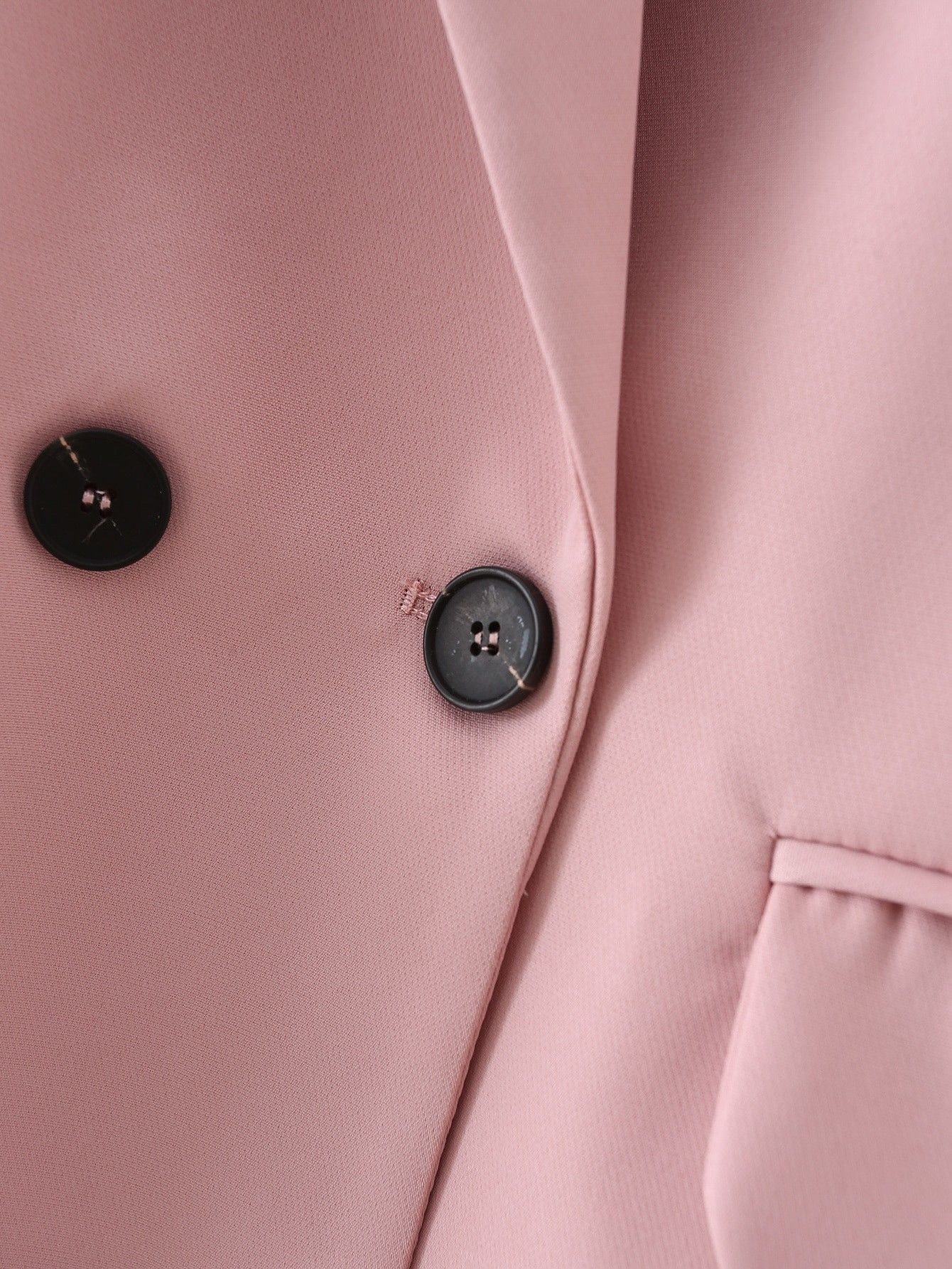 Herfst En Winter Vrouwen Blazer Jacket Casual Effen Kleur Double-Breasted Pocket Decoratieve Jas