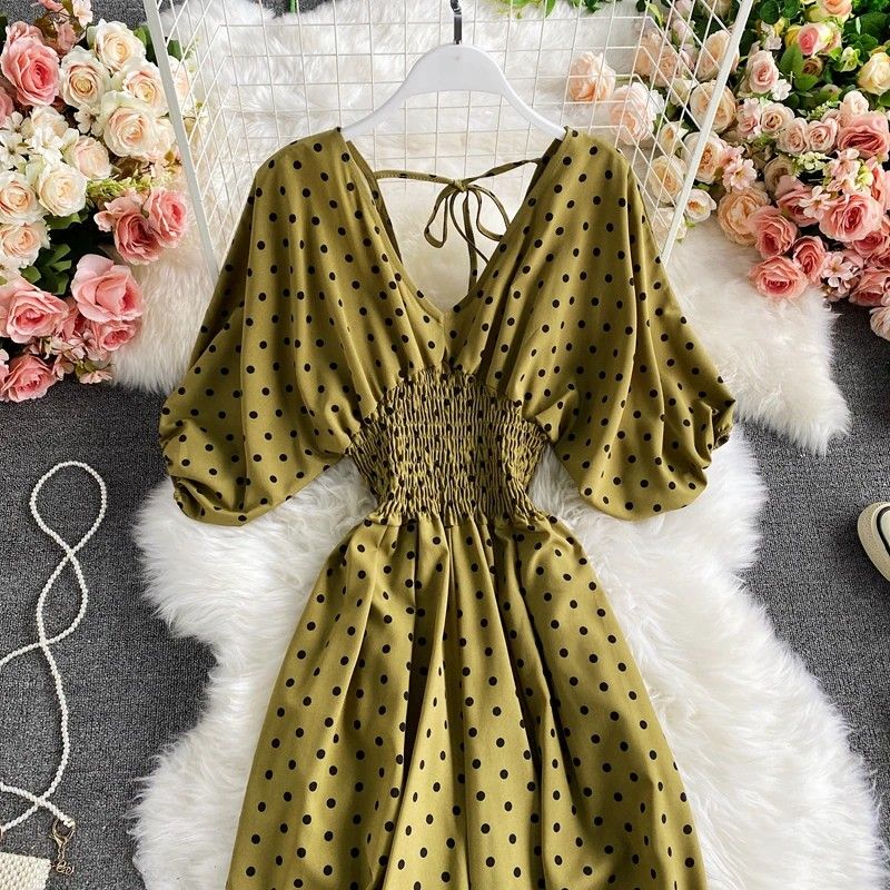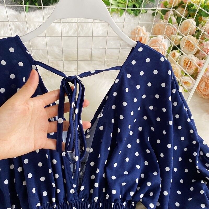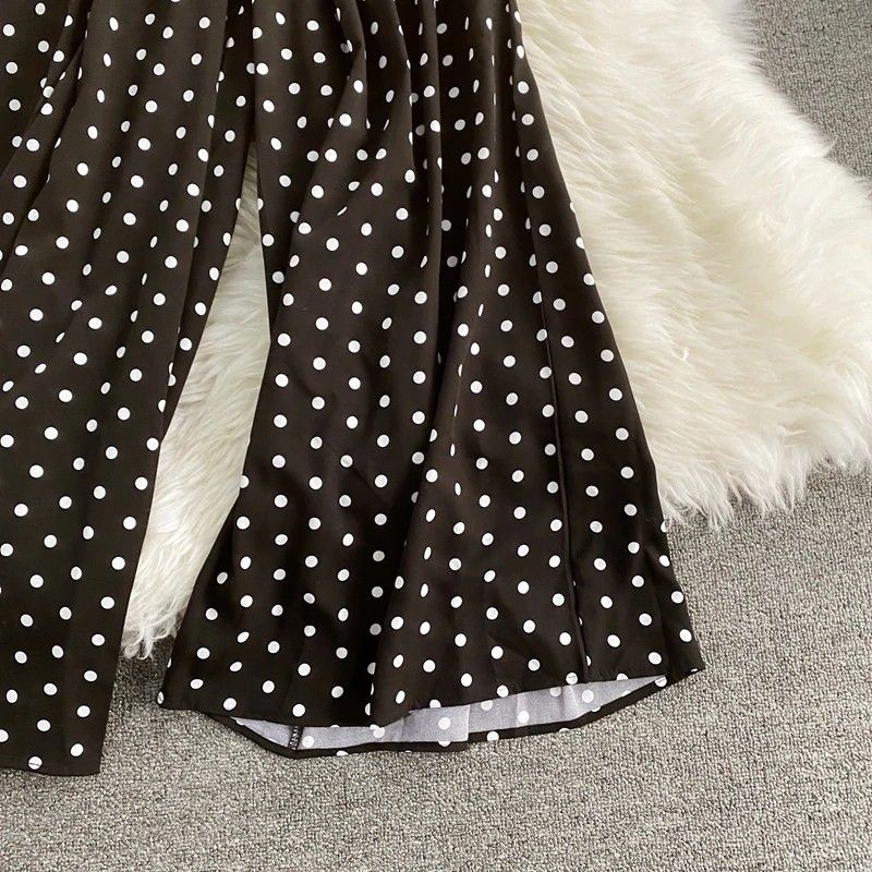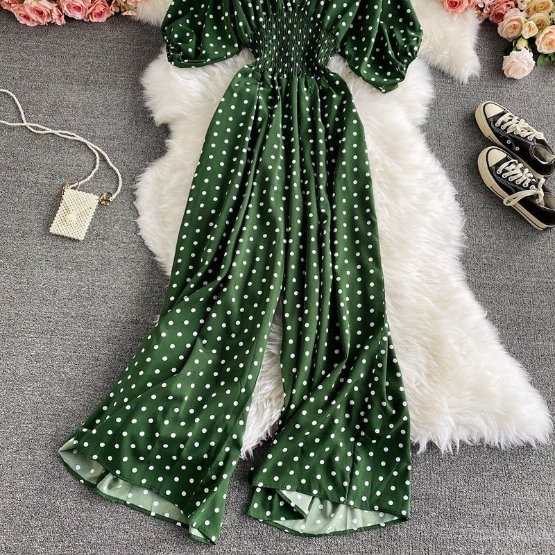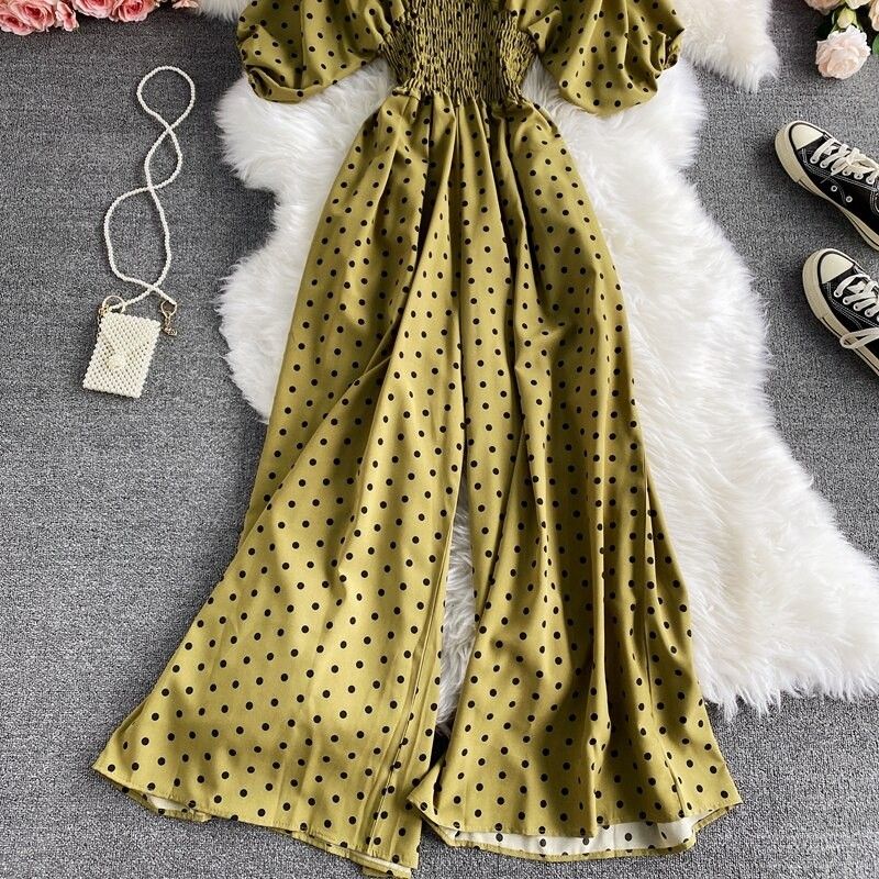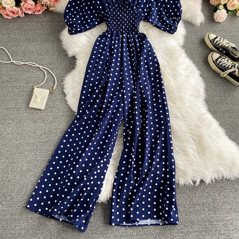 Herfst Sexy Polka Dot Breken Vrouwen Elegante V-Hals Puff Korte Mouw Hoge Taille Jumpsuit Vrouwelijke Losse Wijde Pijpen Speelpakjes Mode