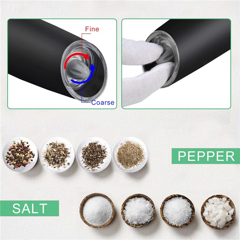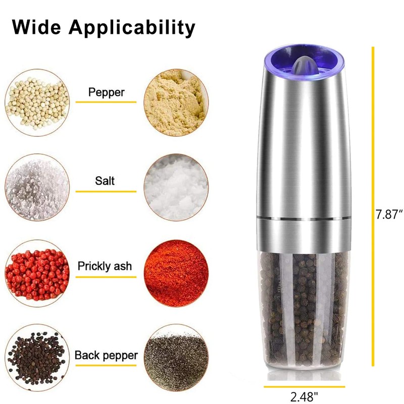 Automatische Zout en Peper Spice Grinder Zwaartekracht Elektrische Pepermolen Verstelbare, Spice Grinder met LED Licht, keuken Gereedschap