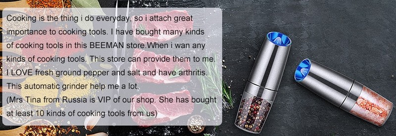Elke BEEMAN zwaartekracht elektrische zout & pepermolen heeft rigoureus ondergaan door een veiligheid controle proces en zijn gemaakt met BPA en gifvrije materialen.