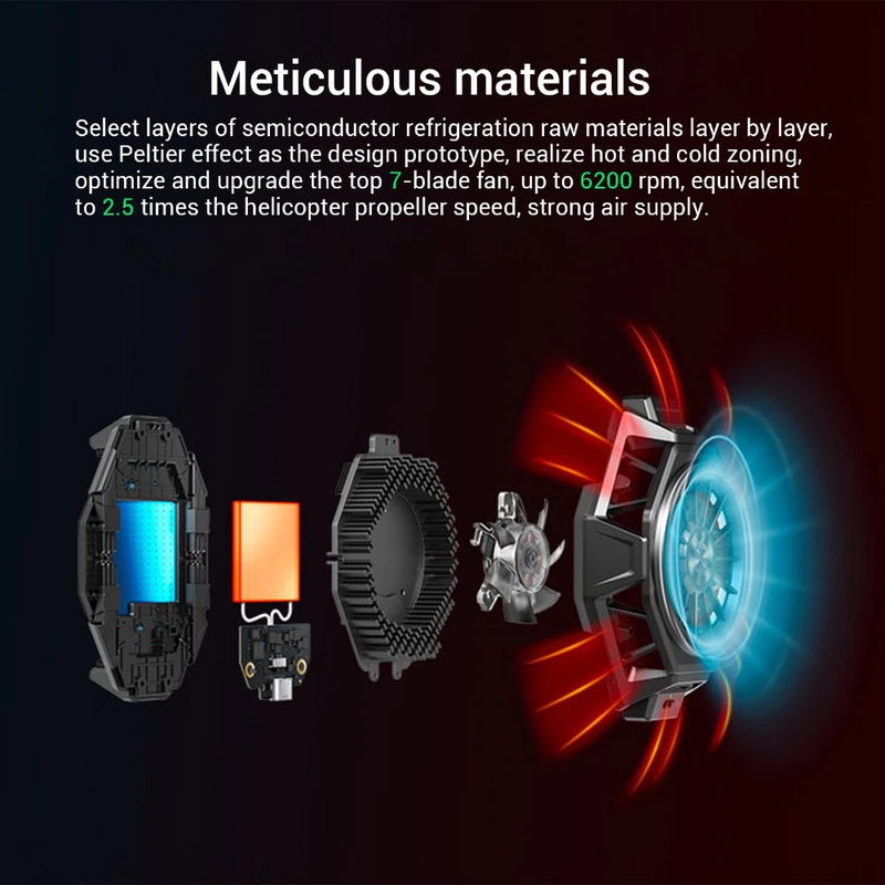 Luchtvaart-grade halfgeleider koeling grondstof, groot contactoppervlak. 7-blade fan, krachtige koeling 24 °C. Verhogen de intelligente temperatuurregeling gear , monitor de temperatuur van het apparaat door de temperatuurregeling chip, automatisch schakelaar de koeling niveau, energie en zorgen