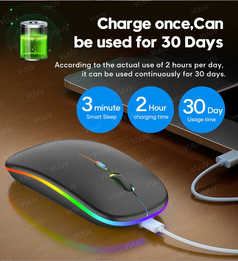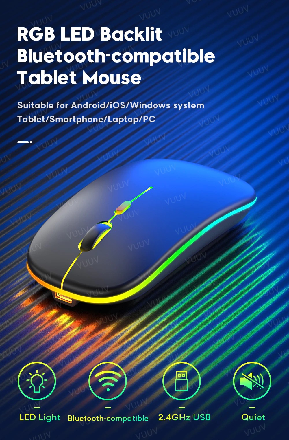 Bluetooth Draadloze Muis Voor Computer Pc Laptop Ipad Tablet Macbook Met Rgb Backlight Ergonomische Stille Oplaadbare Usb Muis