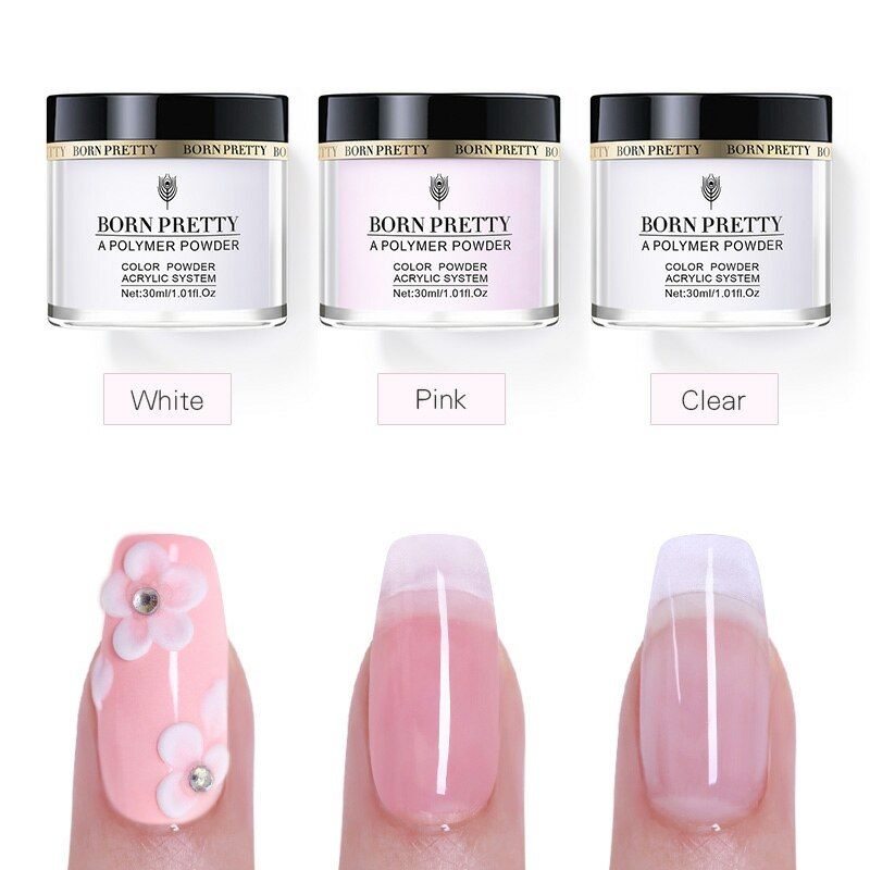Geboren Mooi 30Ml/10Ml Acryl Poeder Carving Nail Polymer Tip Uitbreiding Franse Roze Wit Duidelijk Kleefstof Strass Nail Art