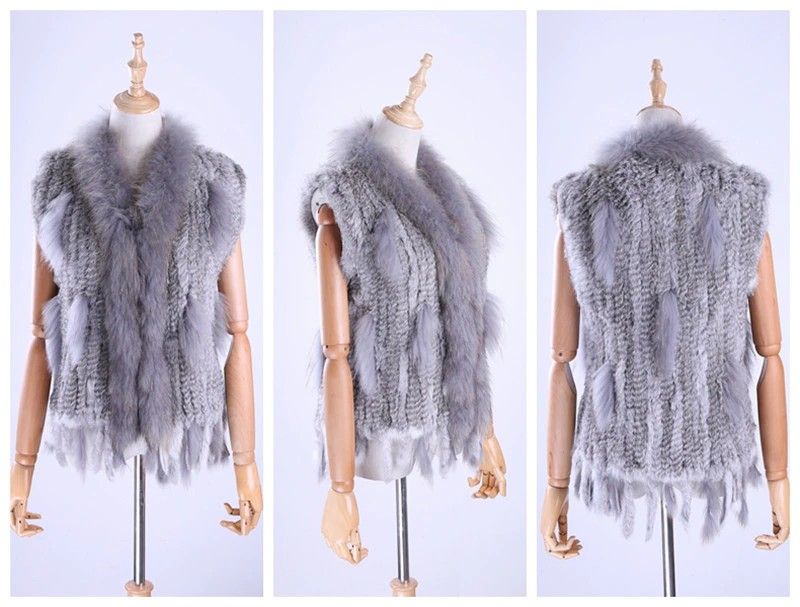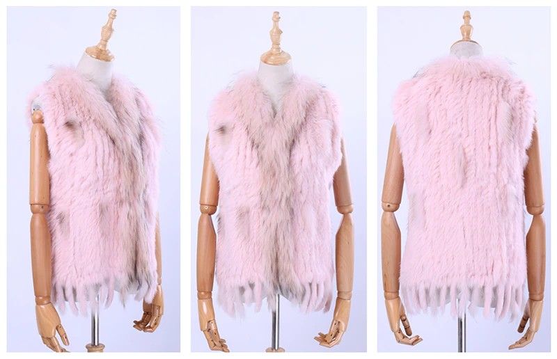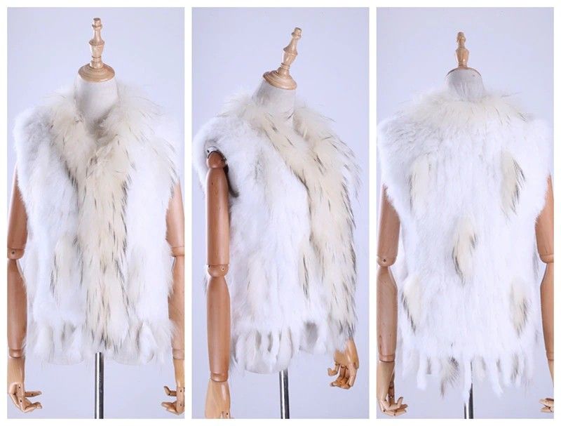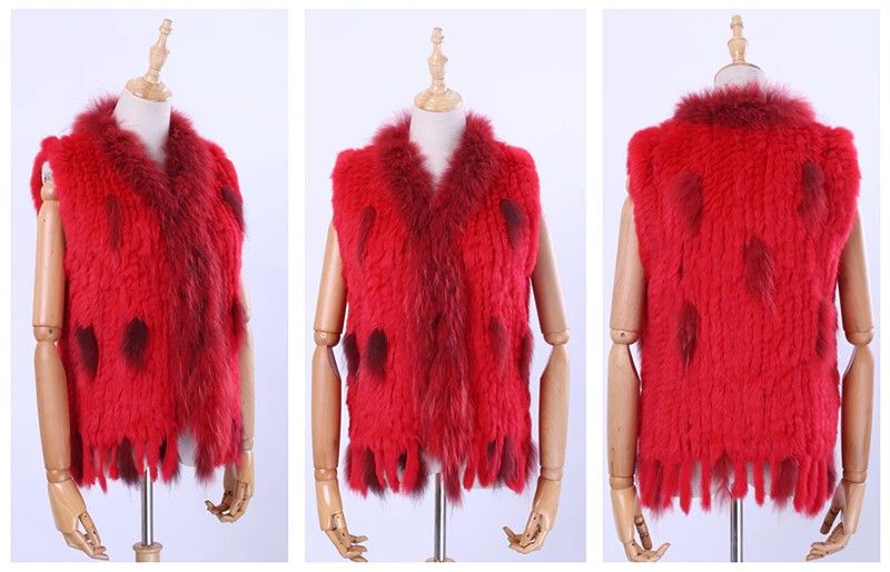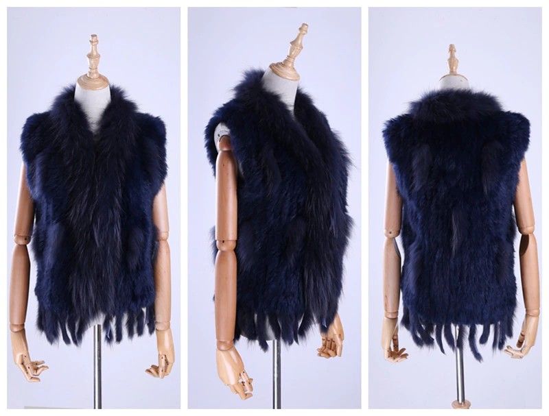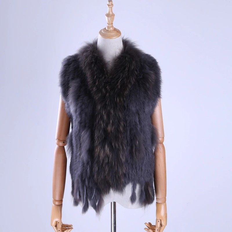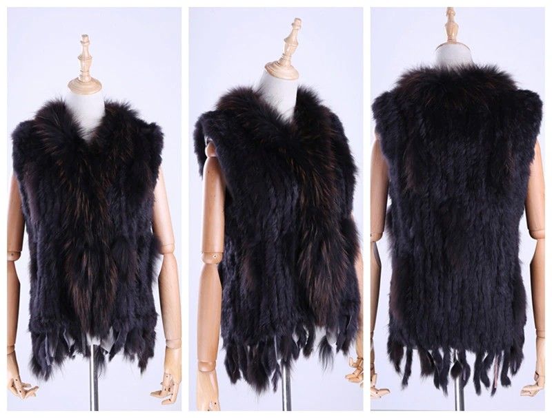 Brand New Vrouwen Lady Echte Echte Gebreide Konijnenbont Vesten Kwasten Wasbeer Bont Trimmen Kraag Vest Bont Mouwloze Gilet