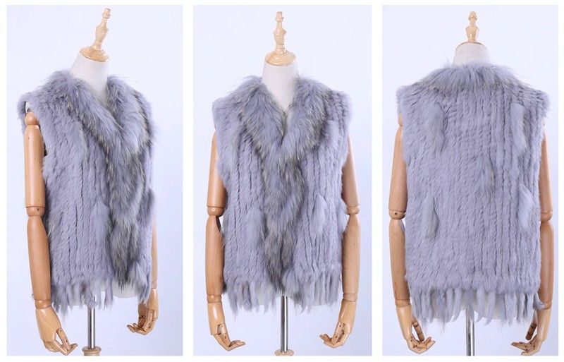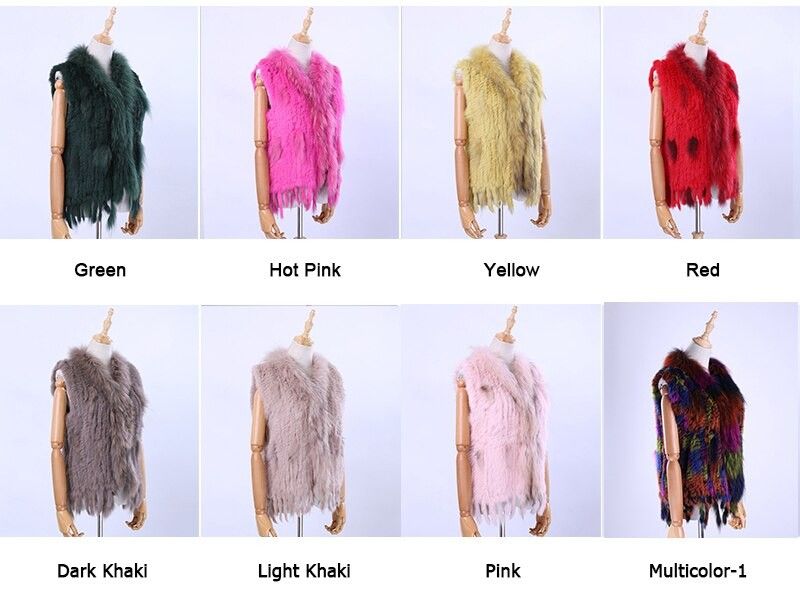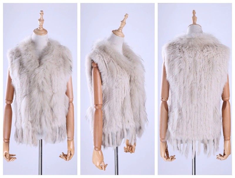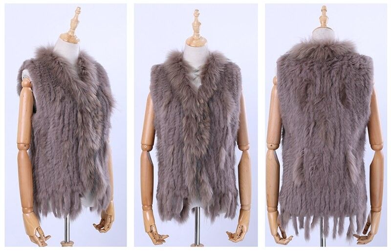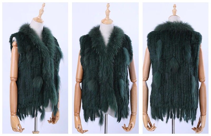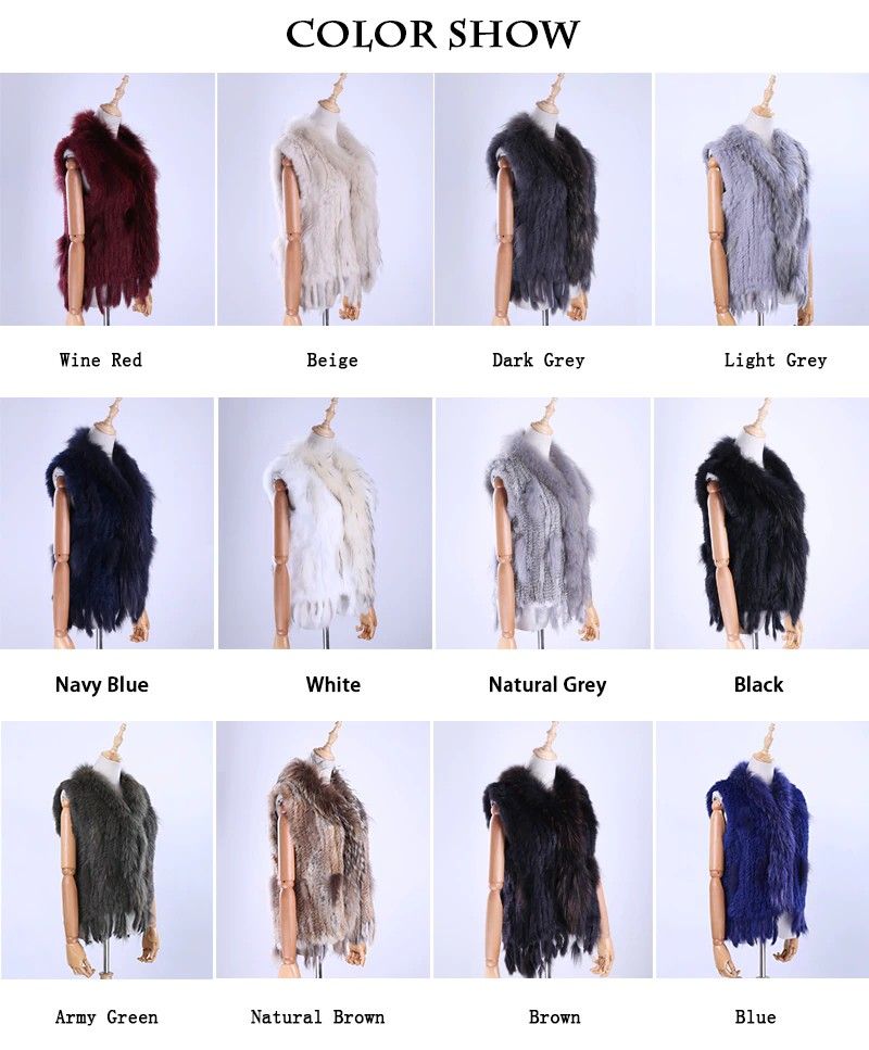 Brand New Vrouwen Lady Echte Echte Gebreide Konijnenbont Vesten Kwasten Wasbeer Bont Trimmen Kraag Vest Bont Mouwloze Gilet