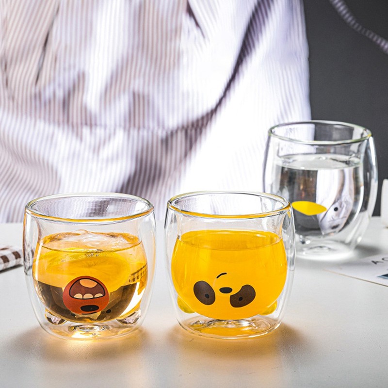 Cartoon Dubbele Laag Borosilicaatglas Mok Beer Cup Melk Cup Huishoudelijke Water Borrelglas Glas Cup Glazen Beker