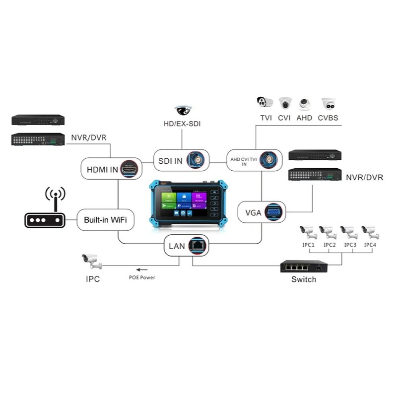 Ondersteuning 8MP TVI + 8MP CVI + 8MP AHD + SDI + 4K H.265 IP + Analoge + EX-SDI/HD-SDI + HDMI IN + VGA IN test + Cabie Tracer