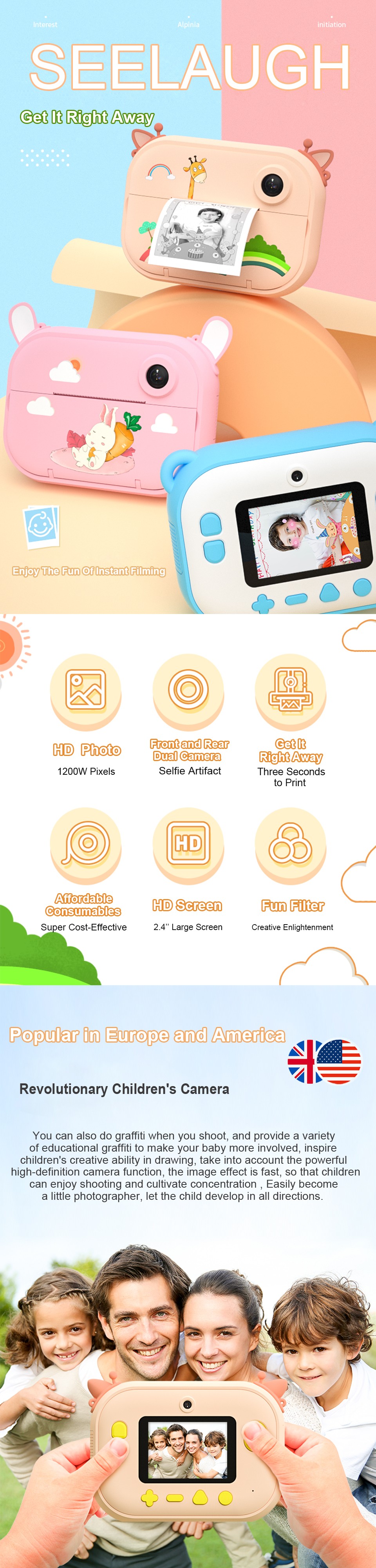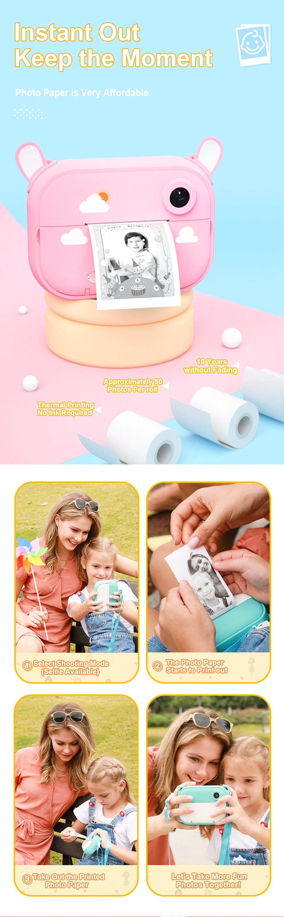 Kind Camera Kids 32Gb Instant Photo Camera Voor Kinderen Print 1080P Hd Digitale Voor Kinderen Foto Camera Speelgoed Verjaardag