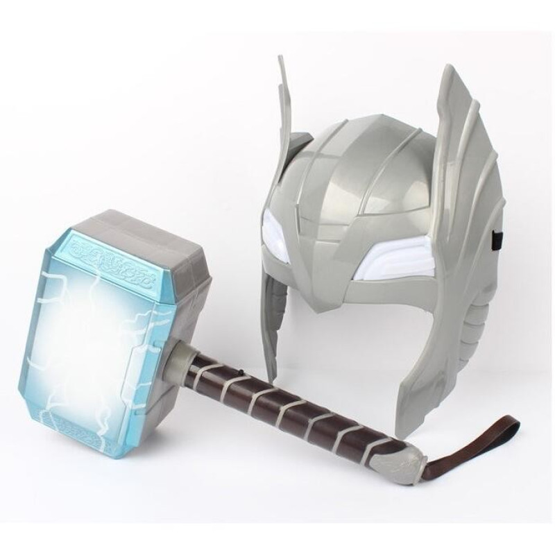Kind Cosplay Led Licht Lichtgevende Klinkende Helm Wapen Mjolnir Hammer Quake Model Speelgoed Kostuum Party Kids Gift