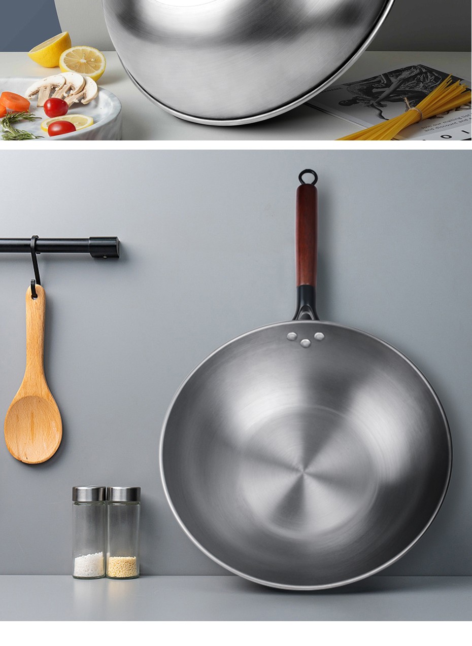 Chinese Wok Ongecoat Non-Stick Wok Steak En Ei Koekenpan Verwijderbare Houten Handvat Vaatwasser Volledig Keuken Kookgerei