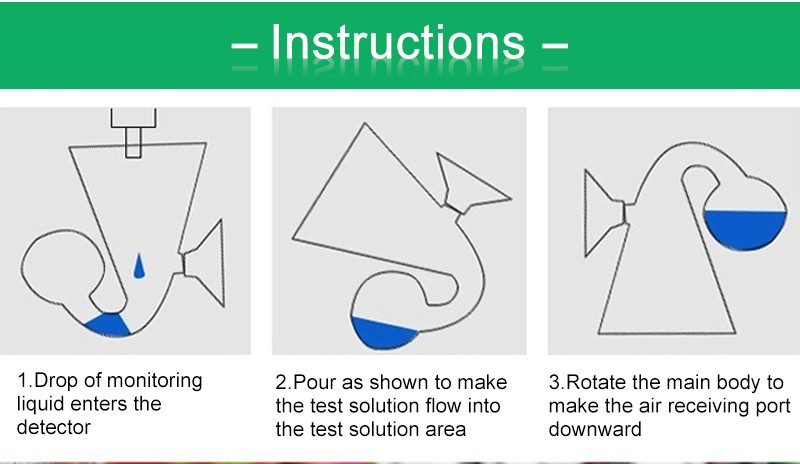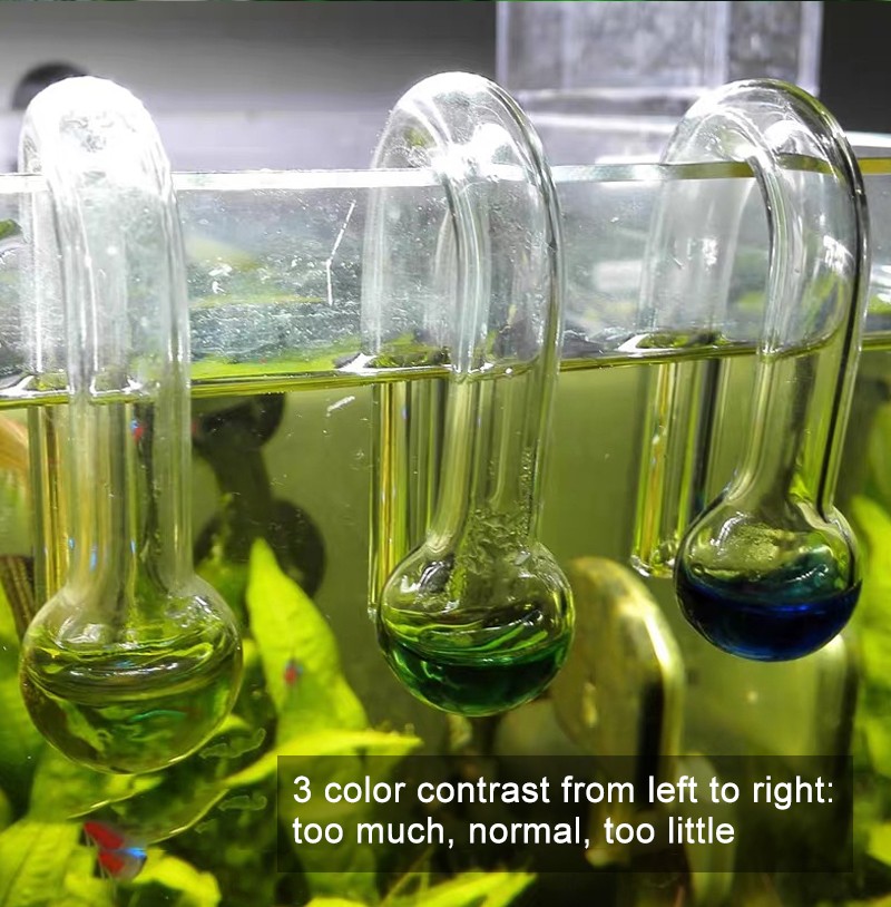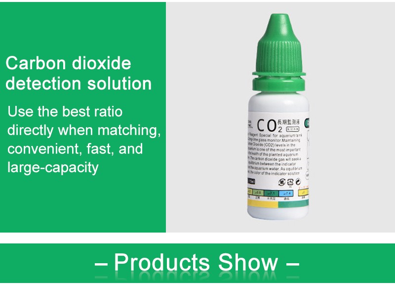1. de verandering van de drie kleuren van de detectie vloeistof geeft de CO2 concentratie van de vis tank.