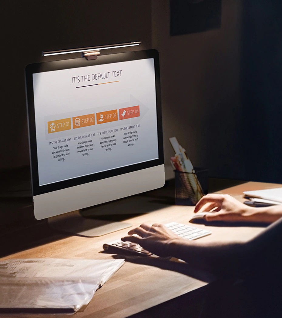 Rechte LED lichtbron voor een breed verlichte gebied zonder dode hoek. de lamp lichaam is ontworpen met een hellingshoek te verlichten het toetsenbord en documenten voor het scherm.