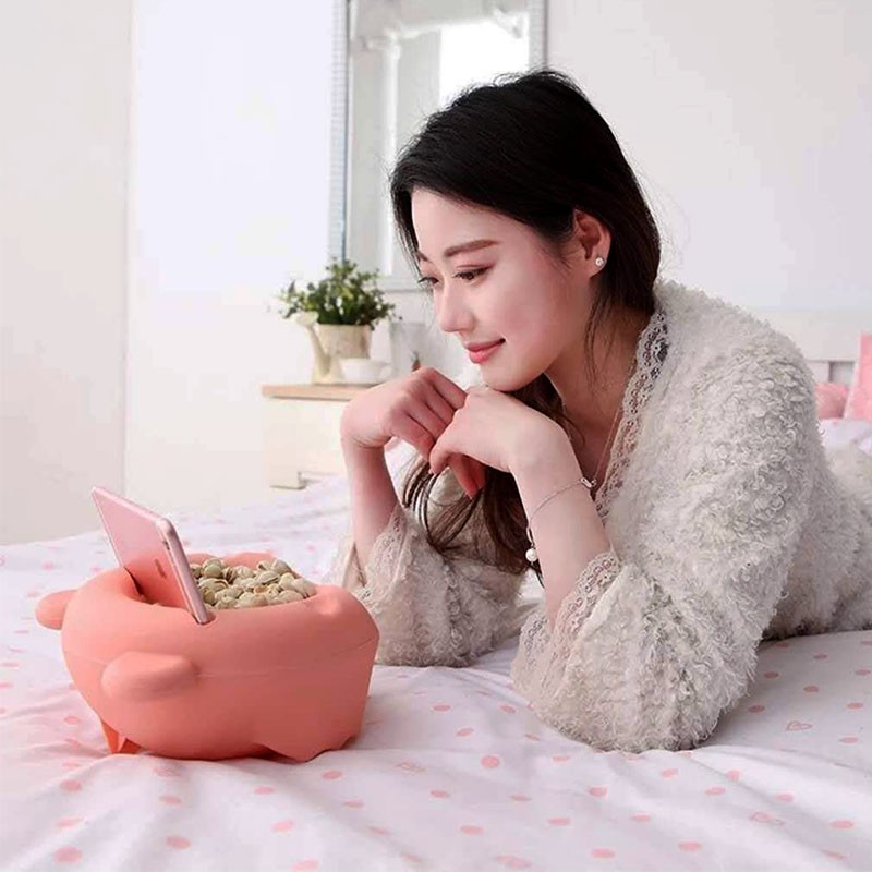 Creatieve Vorm Lui Snack Kom Plastic Dubbele Lagen Snack Opbergdoos Kom Fruitschaal Kom Met Telefoon Houder Voor TV