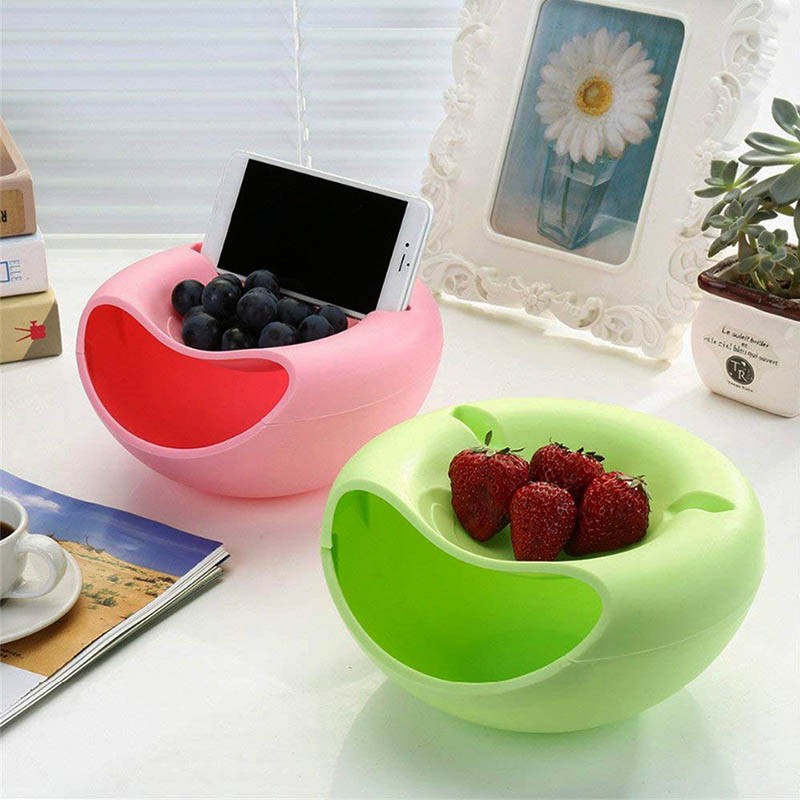 Creatieve Kom Dubbele Laag Droog Fruit Containers Snacks Zaden Opbergdoos Vuilnis Houder Schaaltje Organizer Met Telefoon Holde