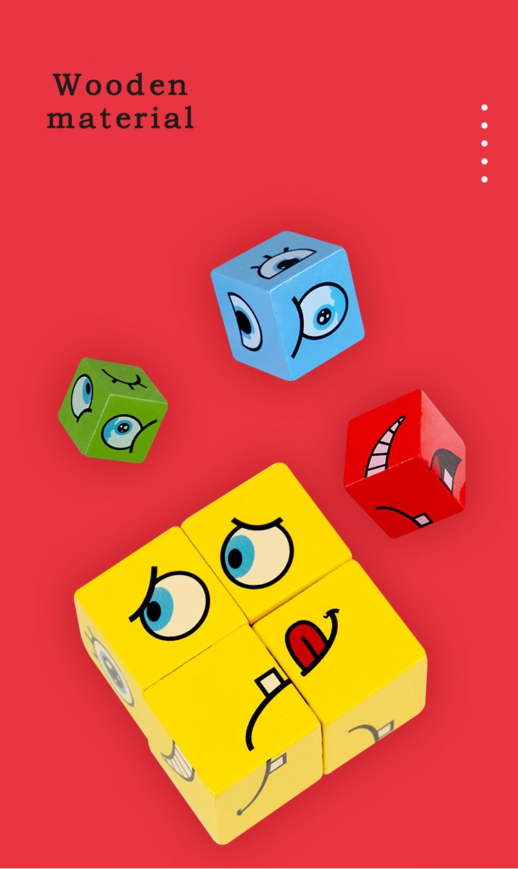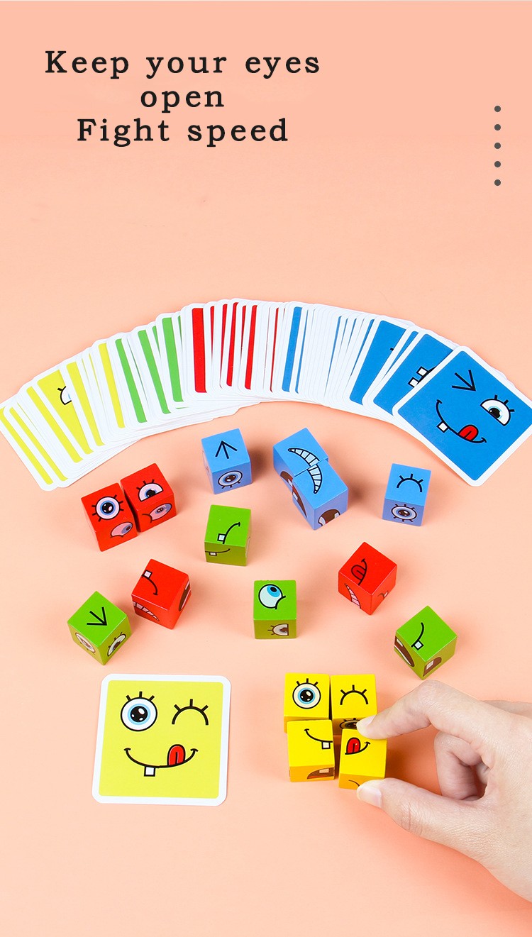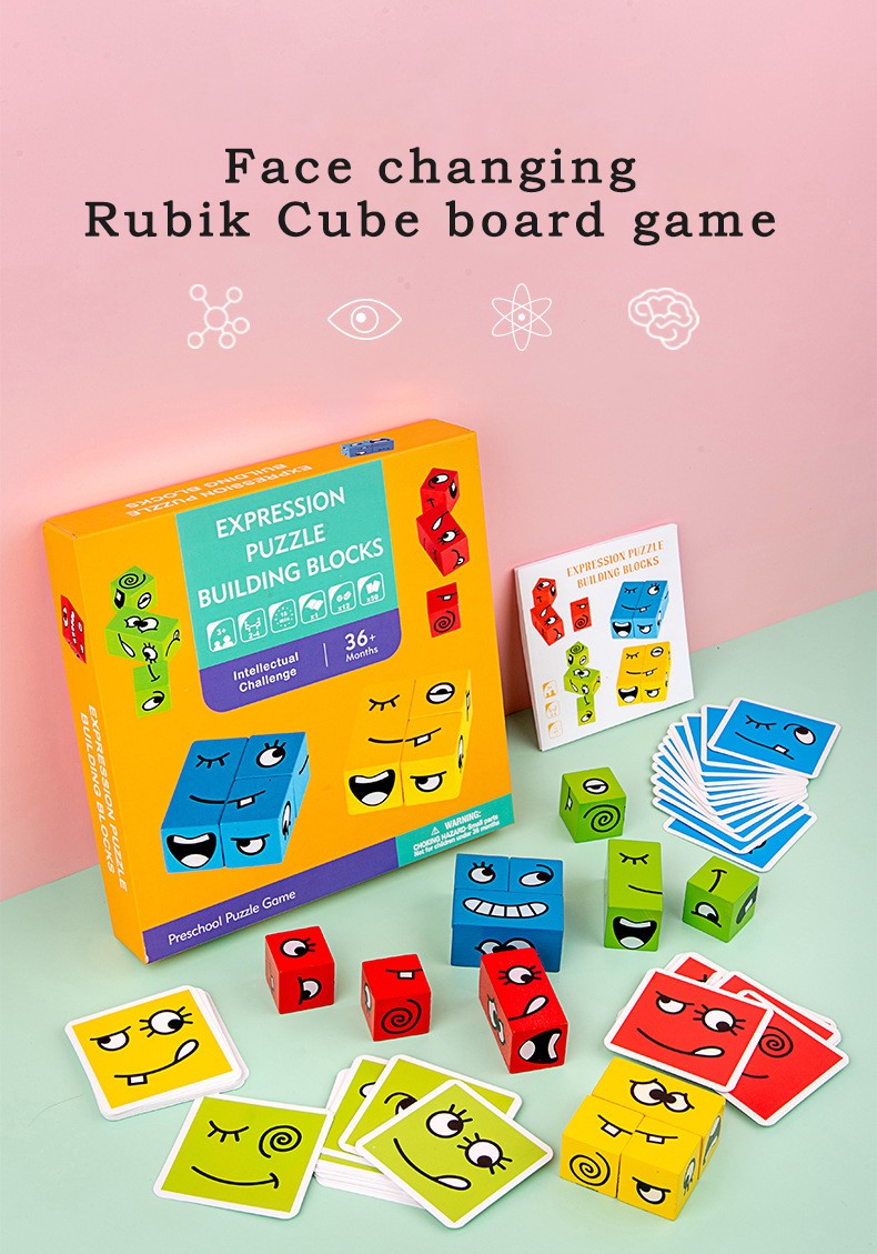 Cube Gezicht Veranderende Bouwstenen Board Game Cartoon Puzzel Montessori Speelgoed Houten Level Game Denken Uitdaging Kinderen Speelgoed