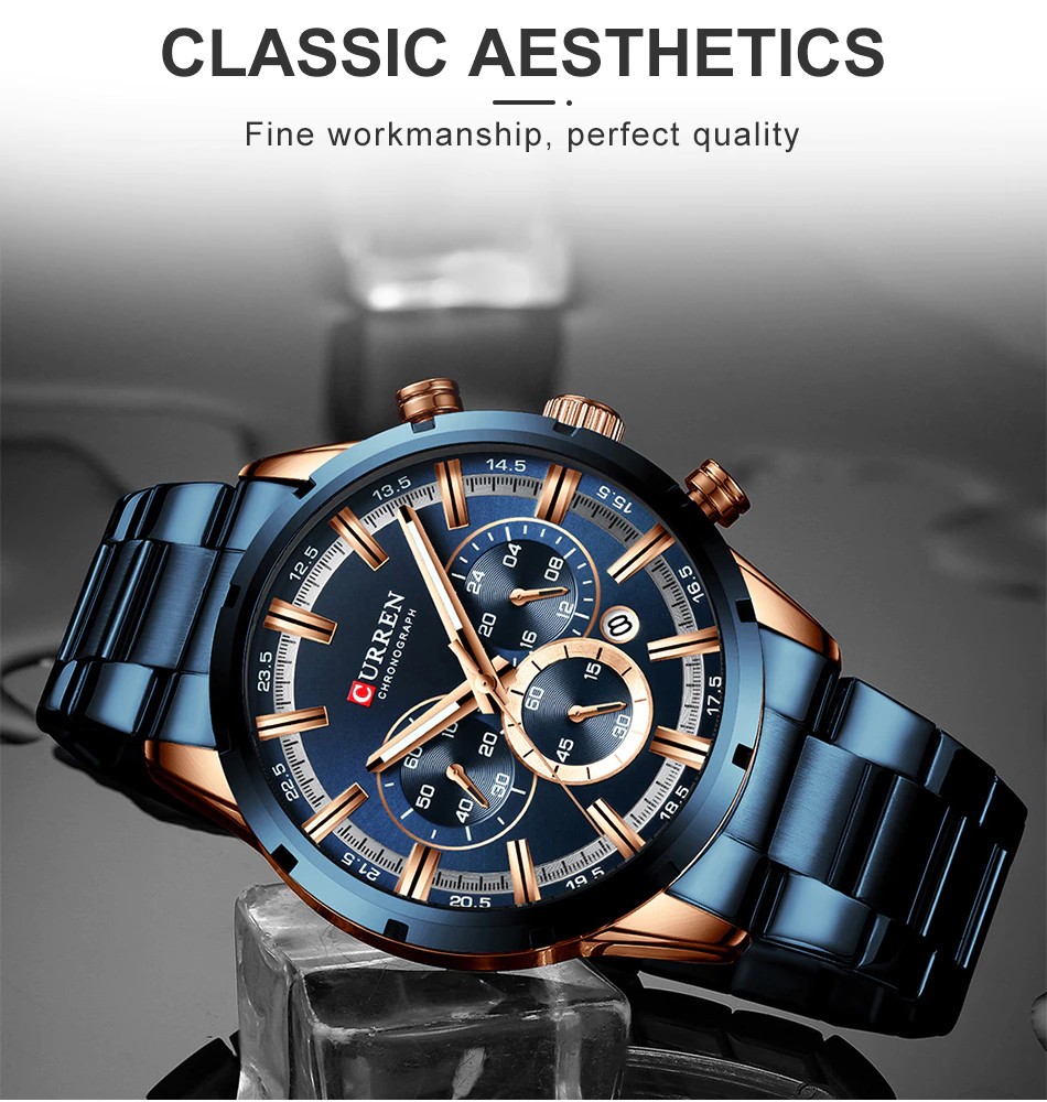 CURREN Mannen Kijken Topmerk Luxe Sport Quartz Heren Horloges Volledige Staal Waterdicht Chronograaf Horloge Mannen Relogio Masculino