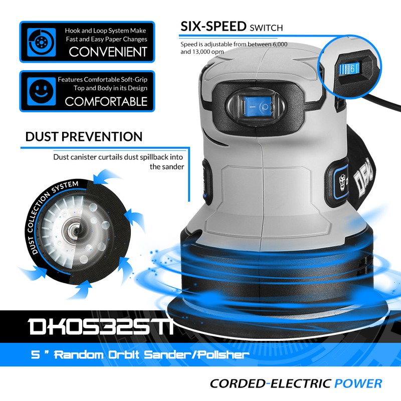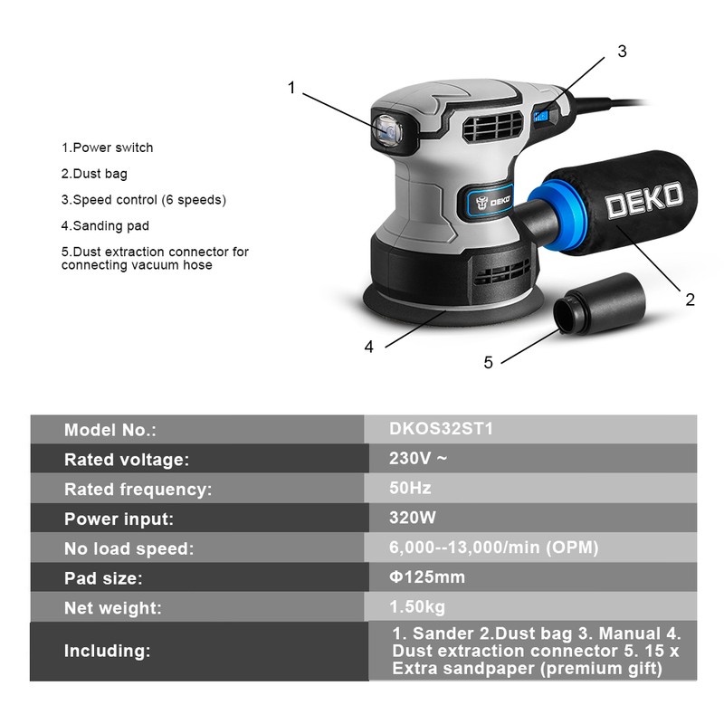 Deko 320W Excentrische Elektrische Sander Machine Met 16Pcs 125Mm Schuurpapier Sterke Stof Collectie Polijstmachine