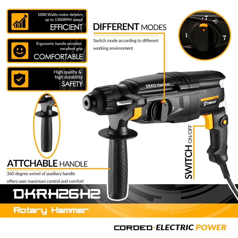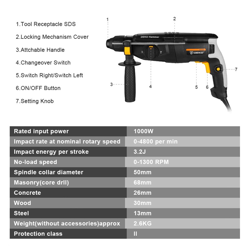 Deko Dkrh26H2/Dkrh20H3 Multifunctionele Boorhamer Met Bmc &Amp; 6 Stuks Accessoires Elektrische Sloop Hamer Klopboormachine