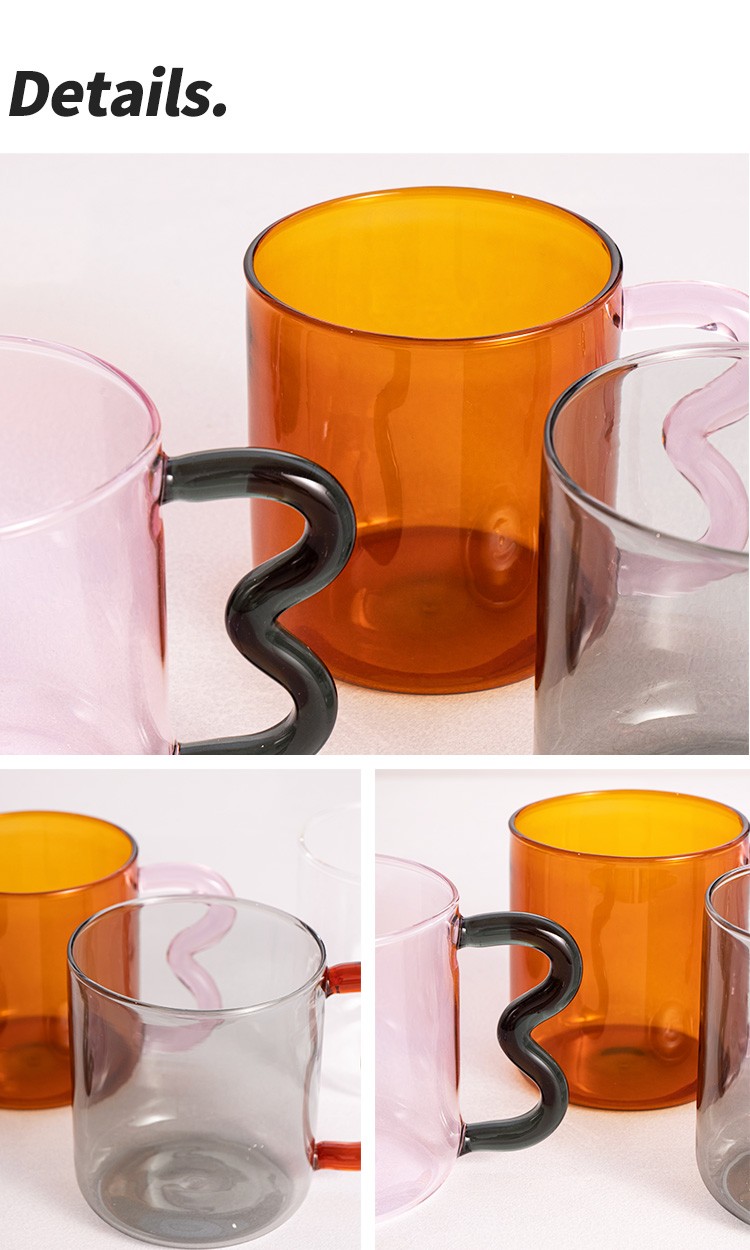 Ontwerp Kleurrijke Oor Glas Mok Handgemaakte Eenvoudige Golf Koffie Cup Voor Hot Water Tumbler Gift Drinkware 300Ml