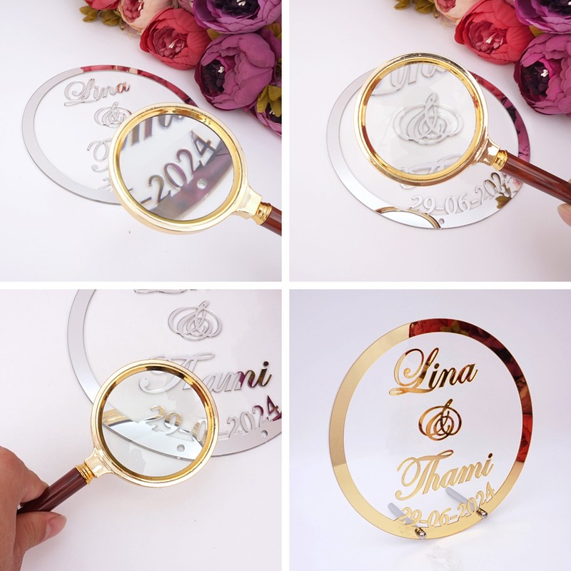 Verschillende Stijl Custom Wedding Borden Naam Datum Acryl Spiegel Frame Woord Teken Party Decor Met Nail Favor Gift Ronde Hart