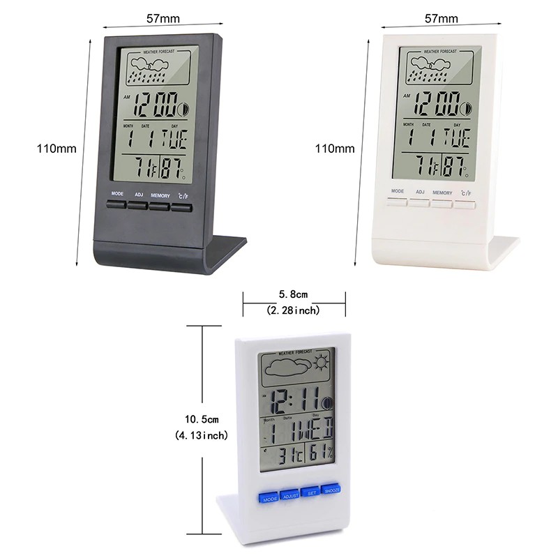 Digitale Lcd Indoor Thermometer Hygrometer Wekker Kalender Weerstation Bureauklok Temperatuur-Vochtigheidsmeter Barometer