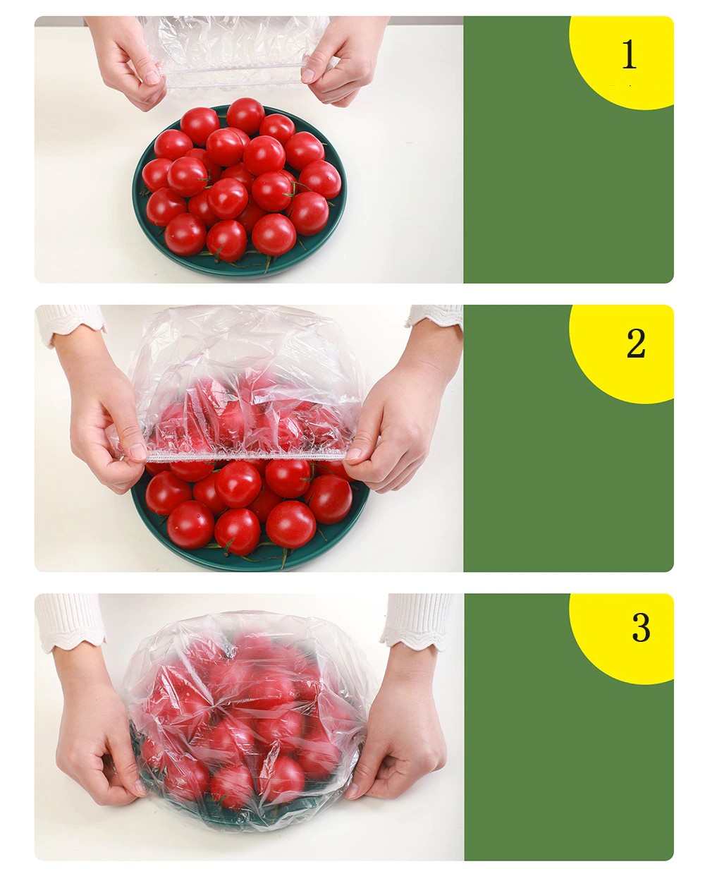 Wegwerp Voedsel Cover Plastic Wrap Elastische Voedsel Deksels Voor Fruit Kommen Kopjes Caps Opslag Keuken Fris Houden Saver Bag