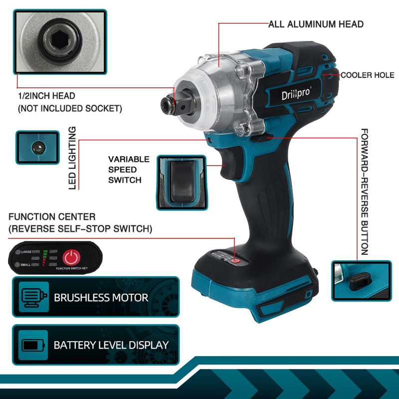 Drillpro 18V 520N. M Cordless Borstelloze Slagmoersleutel Traploze Schakelaar Aangepast Aan 18V Makita Batterij