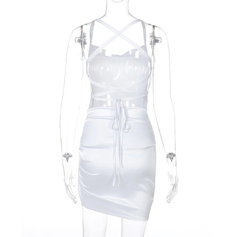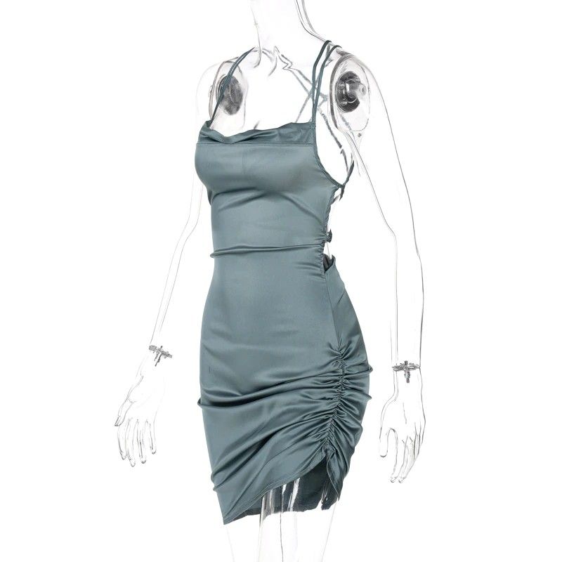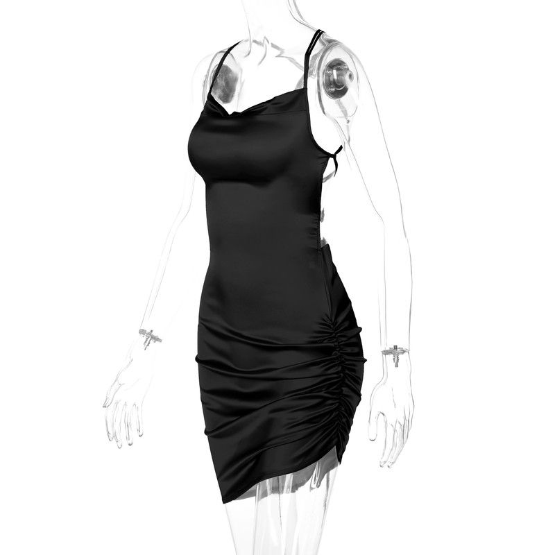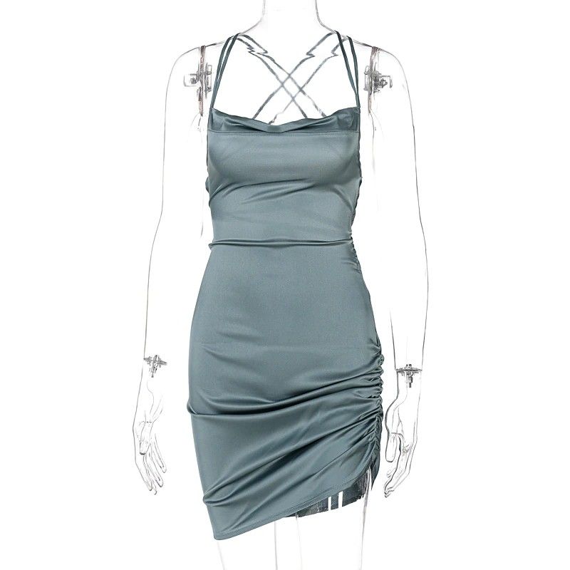Dulzura Satijn Vrouwen Strap Mini Jurk Ruches Lace Up Cross Bandage Backless Bodycon Sexy Party Elegante Laatste Club Kerst Slim