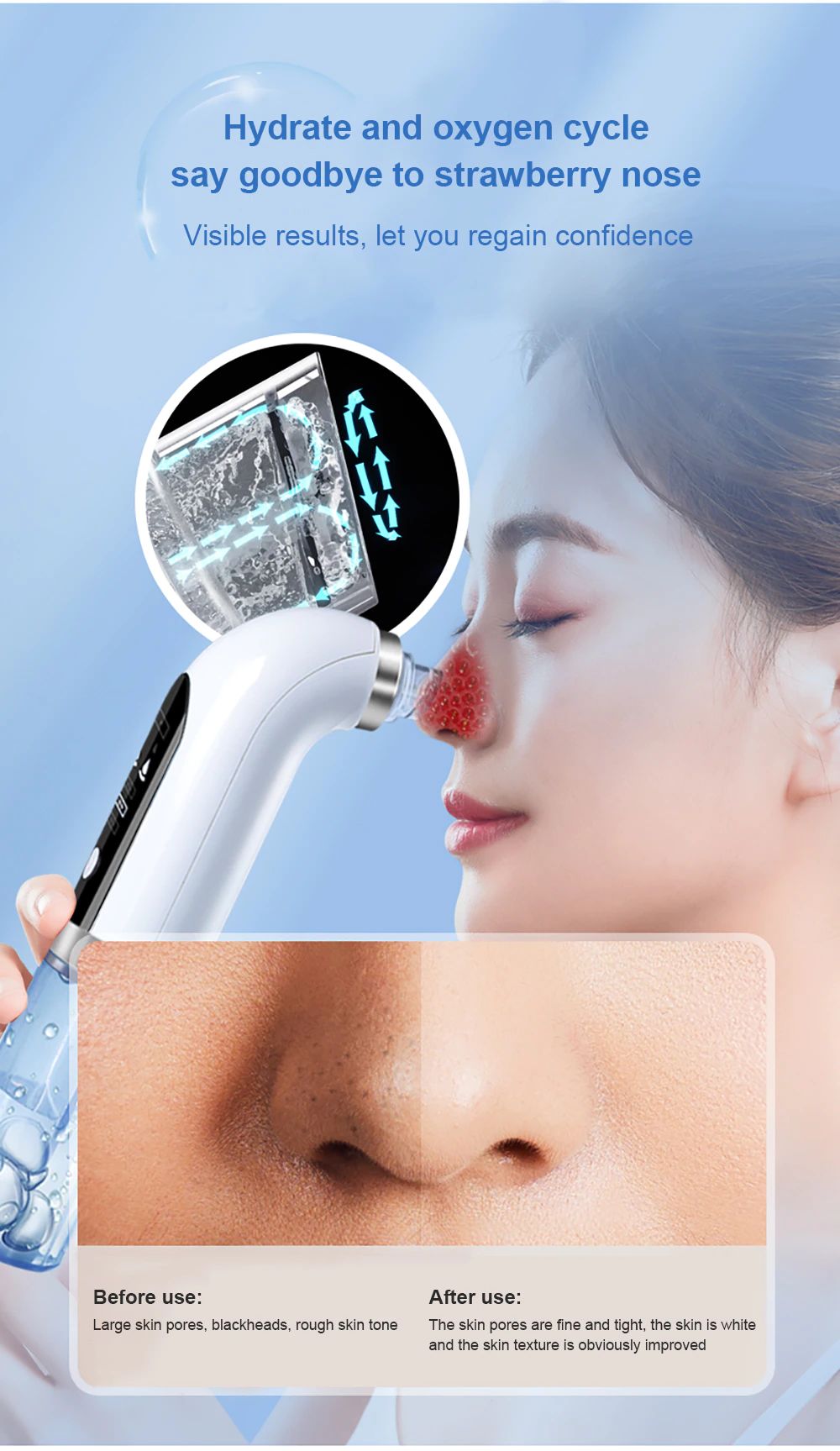 UPGRADE ONTWERP IN 2020-KRACHTIGE ZUIGKRACHT EN BETROUWBARE TECHNOLOGIE: de Nieuwste Generatie Comedondrukker gebruikt de intelligente constante kracht technologie en luchtpomp technologie zonder kwetsen uw huid. De porie vacuüm zuigdruk varieert van 55-100 kpa om de krachtige zuigkracht, die effectief te ontdoen van mee-eters, acne en vergrote poriën. Uitgerust met Zes Verbeterde vervangbare sondes, die elke dienen verschillende huid behoeften.