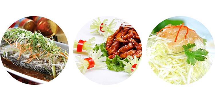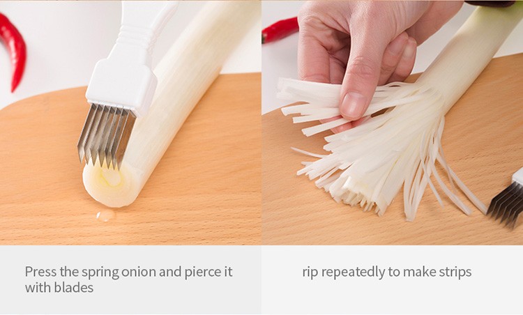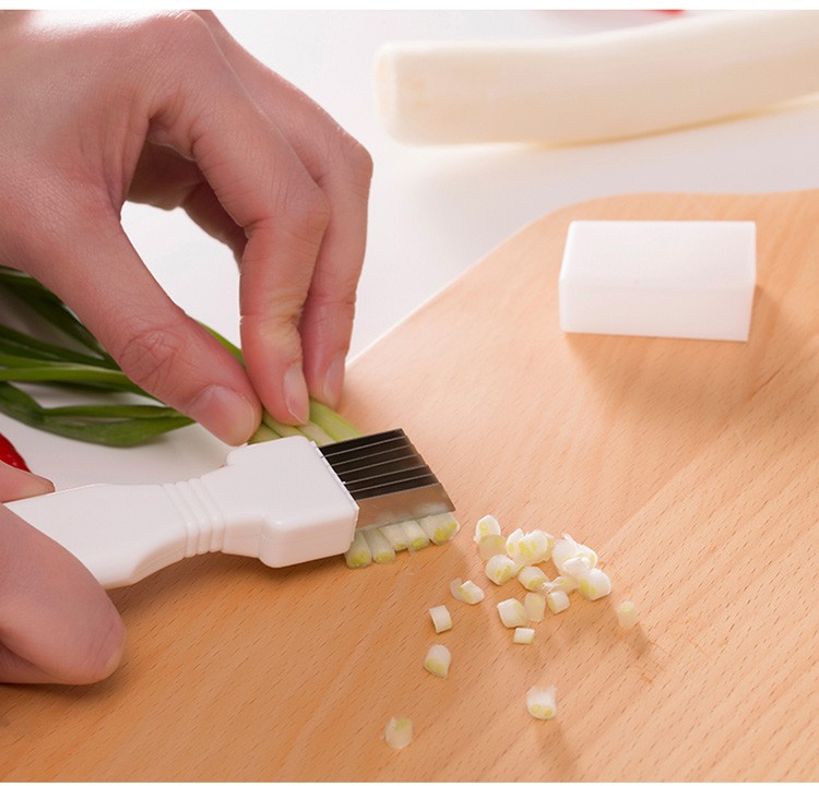 ♥7 bladen, die kan worden versnipperd en gesneden in secties. De afstand tussen elke stalen mes is hetzelfde, en het kan snel uitsnede zelfs gesnipperde groene ui en groene ui segmenten.