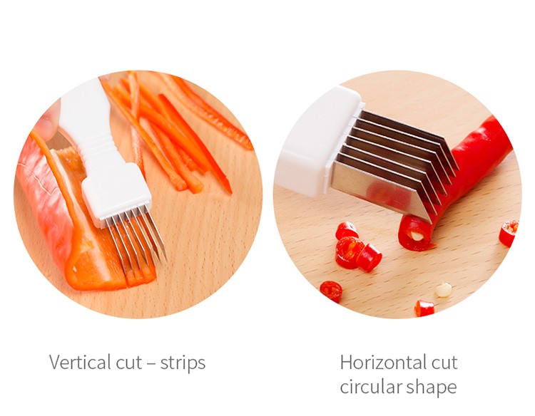♥Eenvoudige bediening, snelle snijden. Houd de sjalot segment te stab de blade in, en snijd het herhaaldelijk vormen zijde.