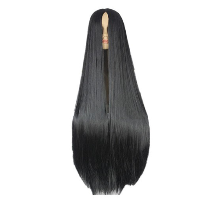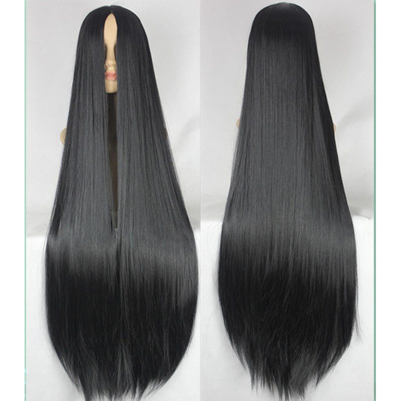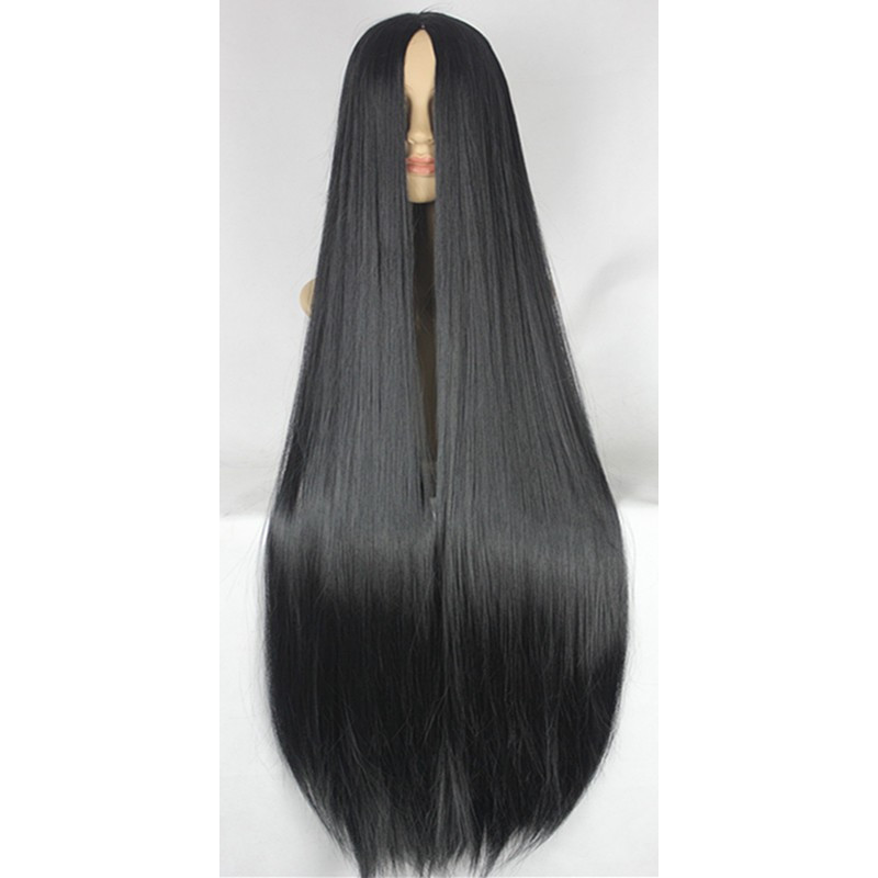 Fei-Show Zwarte Pruik 100Cm/40 Inches Synthetische Hittebestendige Vezel Lange Halloween Carnaval Kostuum Cos-Spelen Steil Haar