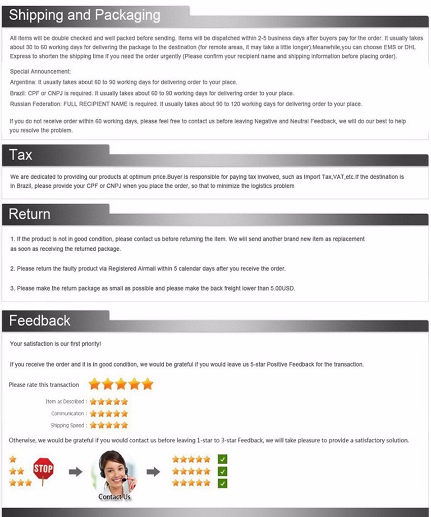 -Het product bevat geen retail verpakking. Als u het product verpakking, neem dan contact ons. We zal ervoor zorgen dat de goederen in goede staat.