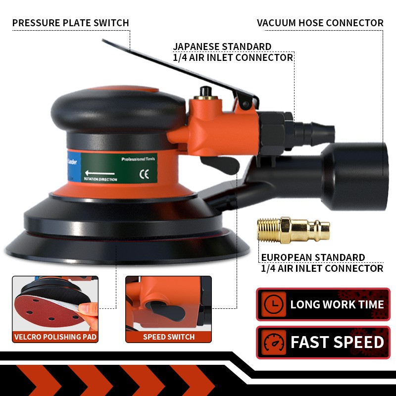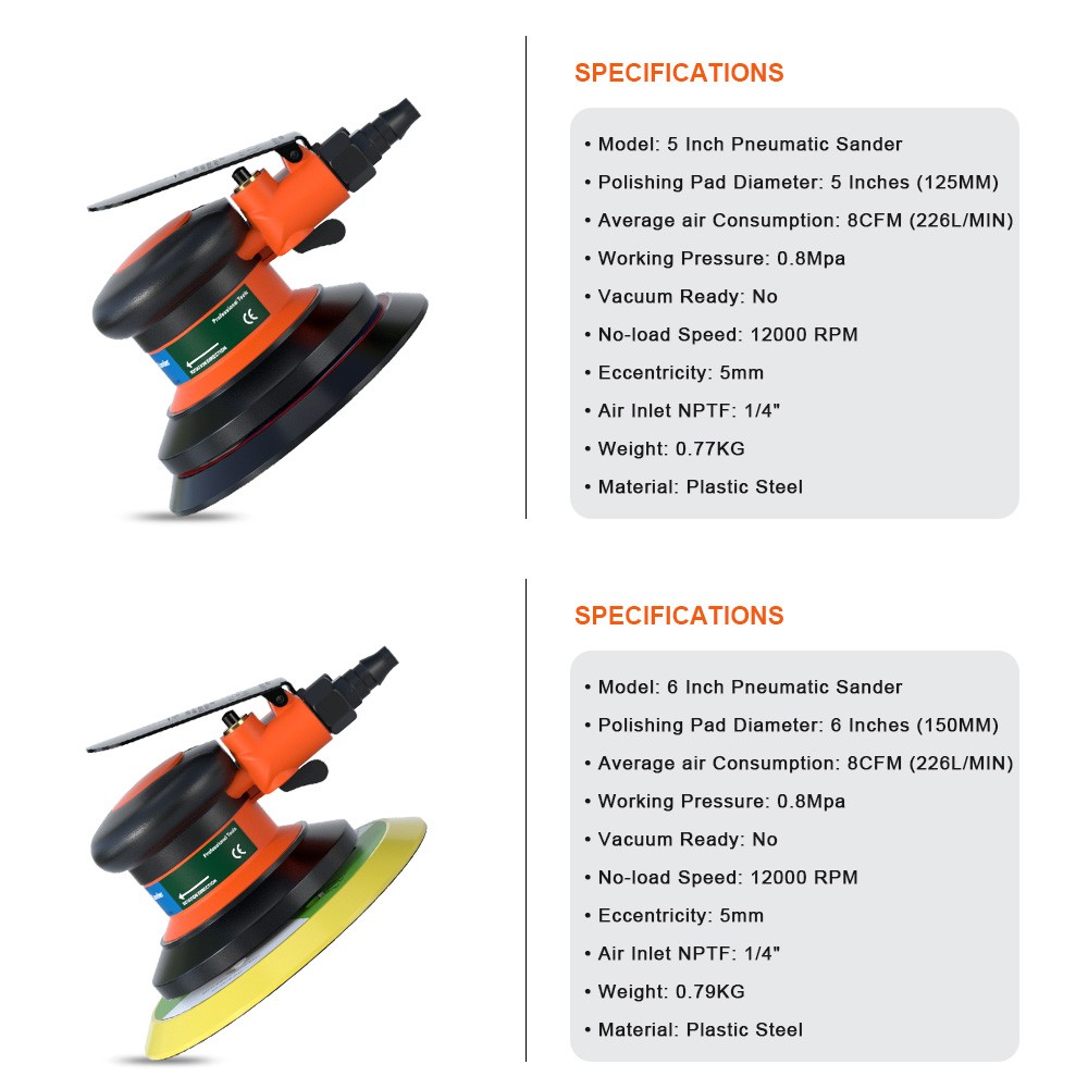 FivePears Pneumatische Orbital Sander Air Grinder,125mm/150mm Vacuüm Excentrieke Polijsten/Slijpen Machine Pneumatisch Gereedschap