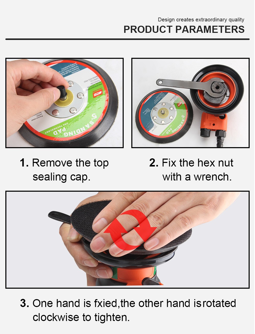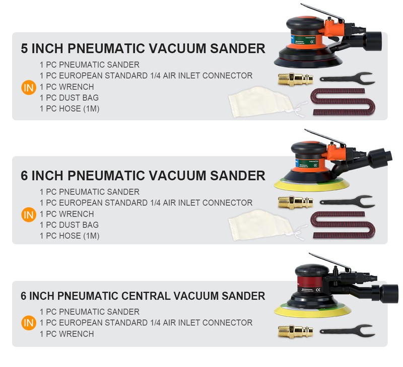 Opmerking: de 6-inch pneumatische centrale vacuüm grinder moet worden aangesloten op een stofzuiger om de stof collectie functie.