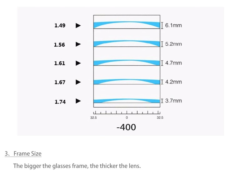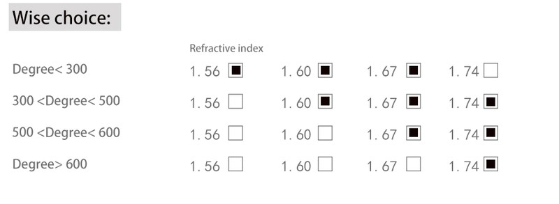Modelnummer: 1,56 1.61 1.67 (sph -0,50 ~ -10.00) (+0,50 ~+10.00)