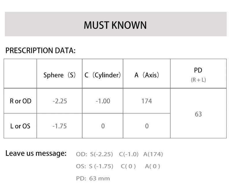 SPH: -0.50 ~ -6.00;CYL: -0.50~-2.00