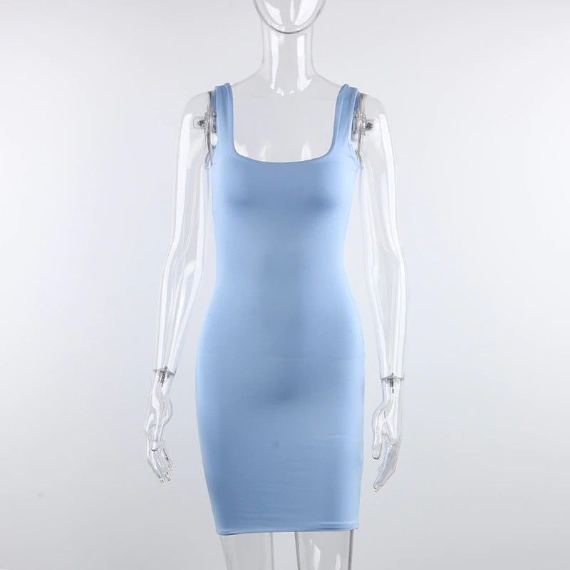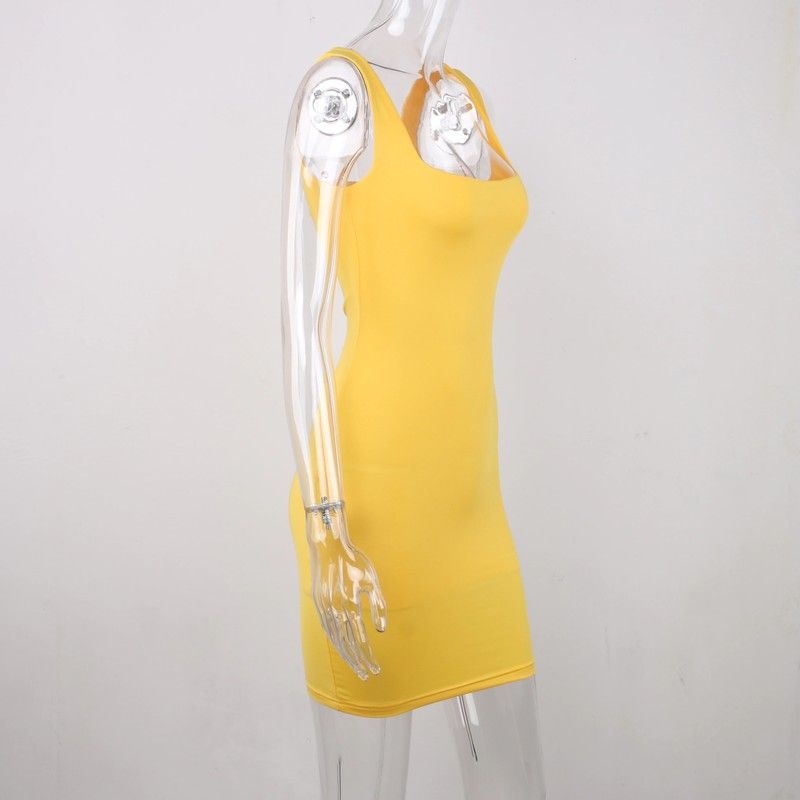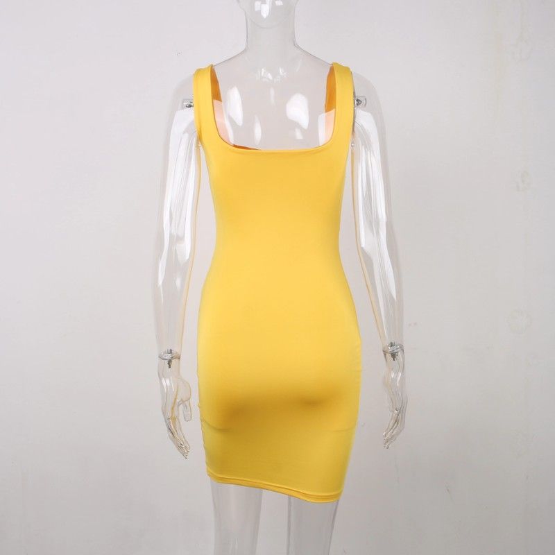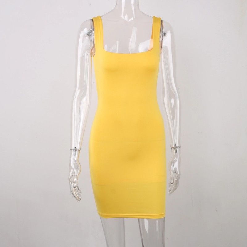 Fsda Vierkante Hals Mouwloze Bodycon Mini Jurk Basic Vrouwen Zomer Zwart Backless Party Sexy Geel Clubwear Laatste Jurken