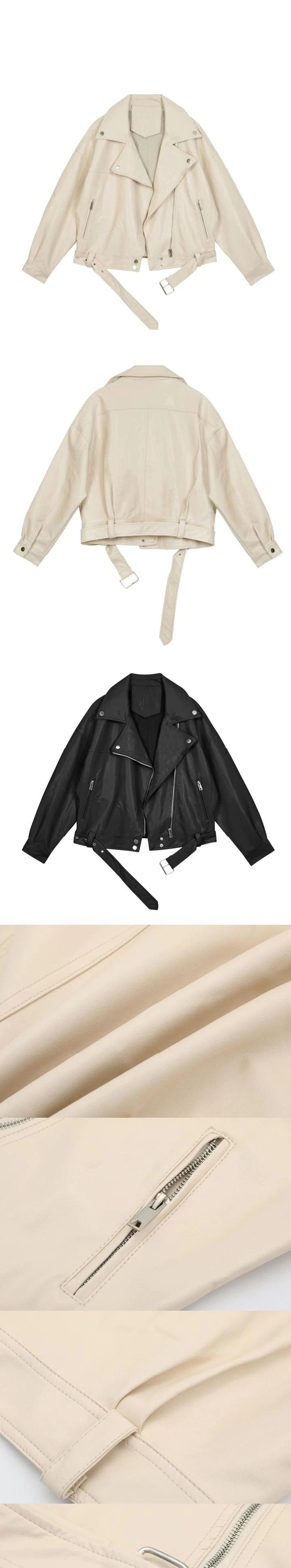 Ftlzz Nieuwste Nieuwe Lente Vrouwen Pu Leren Motorjas Vrouwelijke Met Riem Effen Kleur Jassen Ladys Losse Casual Jas