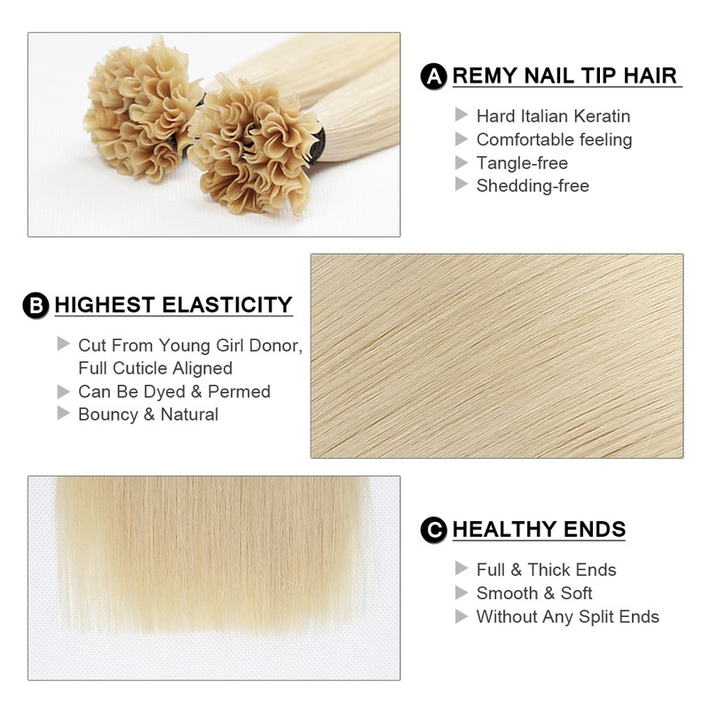 Fusion Keratine Bond Menselijk Haar Extensions Capsule U Nail Tip Real Remy Pre Gebonden Haar Platina Blonde 16 &Quot;18&Quot; 20 &Quot;22&Quot; 0.8 G/Stk