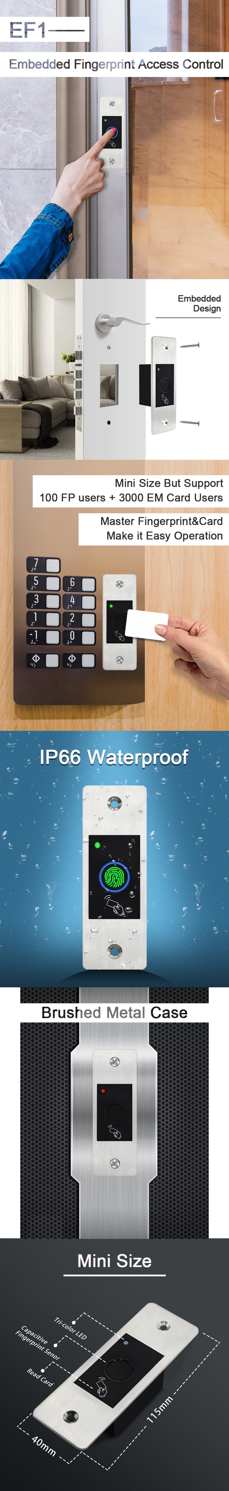 Gate Deurvergrendeling Rfid Metalen Vingerafdruk Toegangscontrole Scanner Mini Metalen Ip66 Waterdichte Ingebed Vingerafdruk Reader