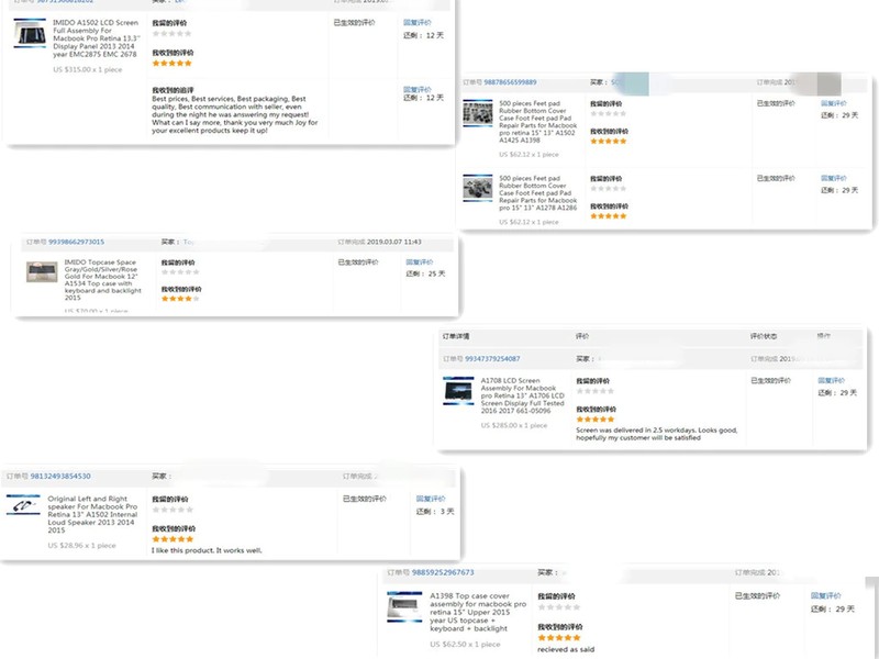 We voornamelijk export laptop onderdelen (moederbord, scherm, toetsenbord, lcd kabel, scharnier, ventilator, adapter, batterij, laptop tas, Bluetooth headset).