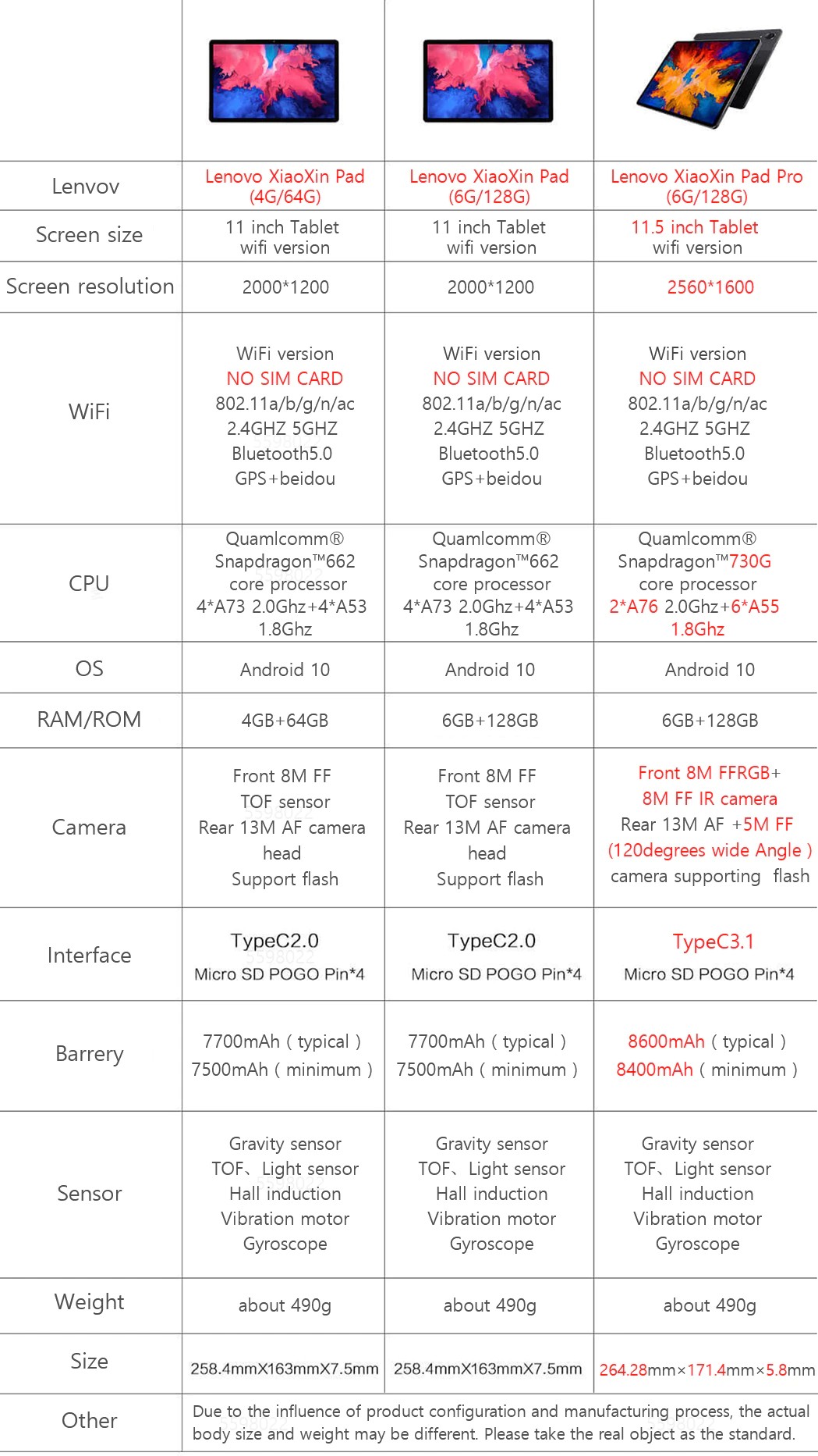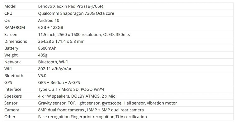 Lenovo XiaoXin Pad P11 Paklijst