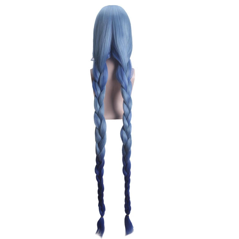 Hairjoy Cosplay Lol Jinx 100Cm Lange Blauw Met Dubbele Vlechten Halloween Anime Kostuum Pruik Hittebestendige Synthetisch Haar
