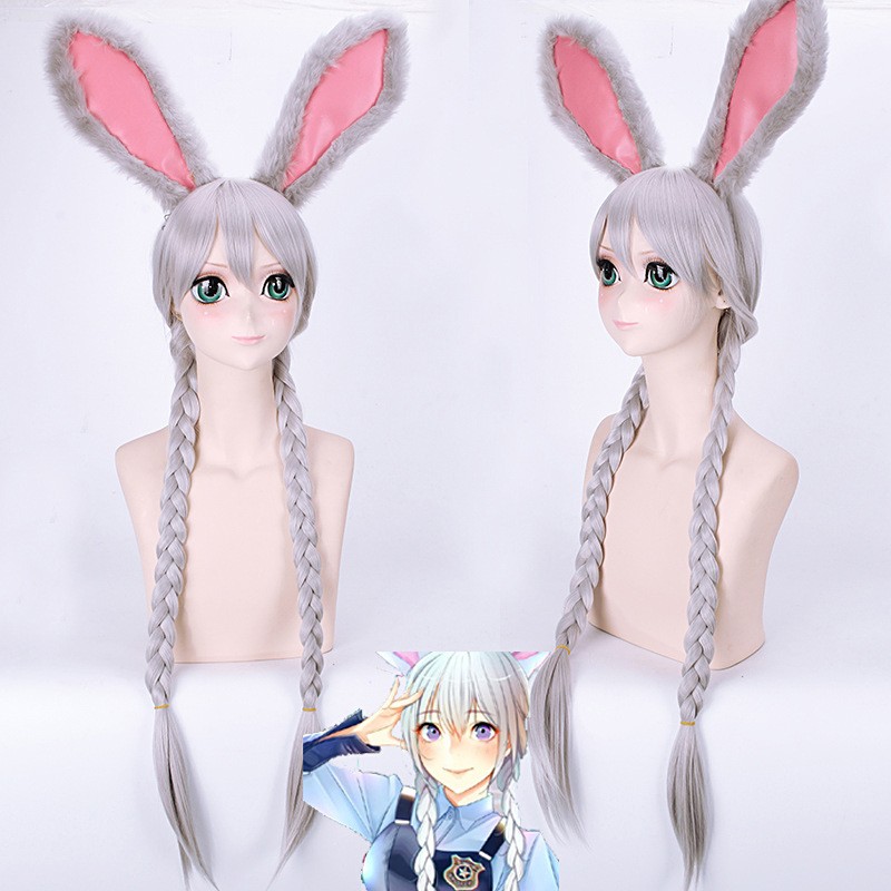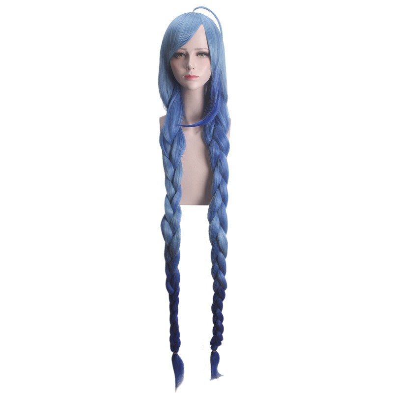 1. Cosplay Lol Jinx 100cm Lange Blauw met Dubbele Vlechten Halloween Anime Kostuum Pruik Hittebestendige Synthetisch Haar
