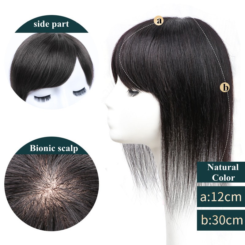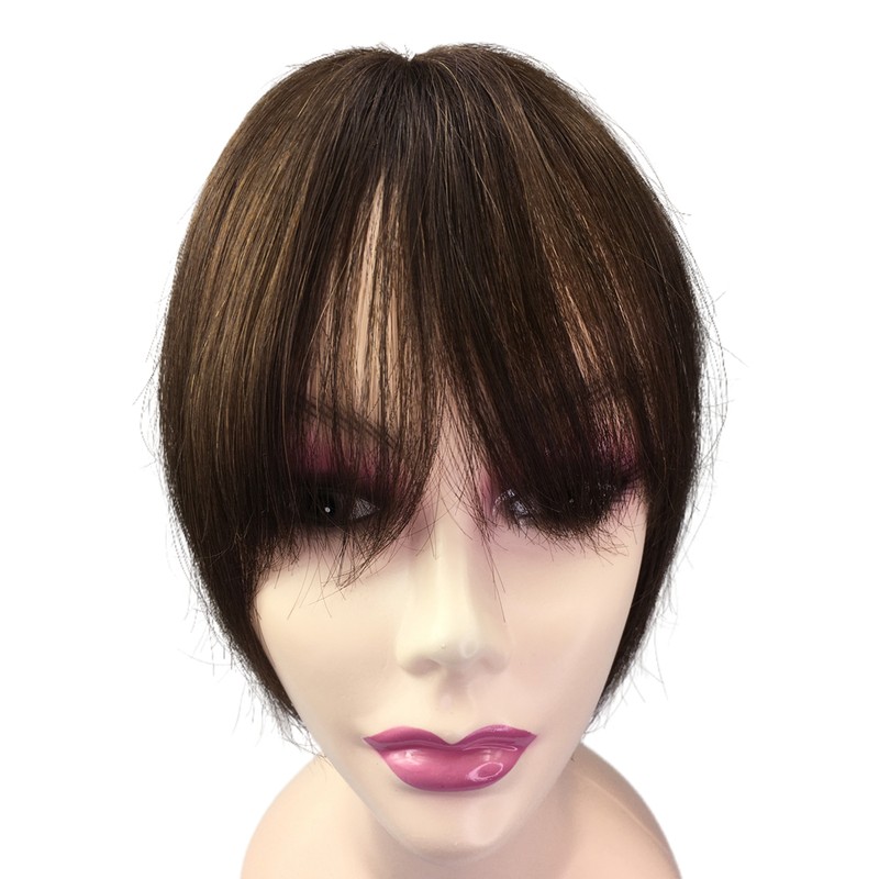 Halo Lady Real Natural Human Hair Topper Pad Rechte Haarstukje Met Pony Cover Wit Haaruitval Voor Vrouwen 8-12Inch Machine Remy
