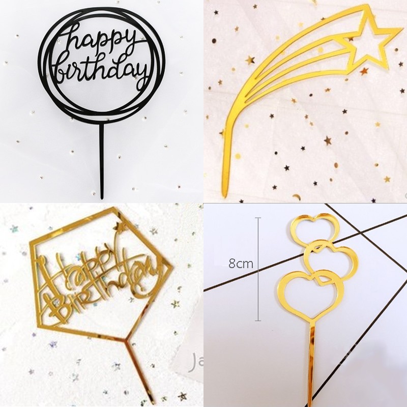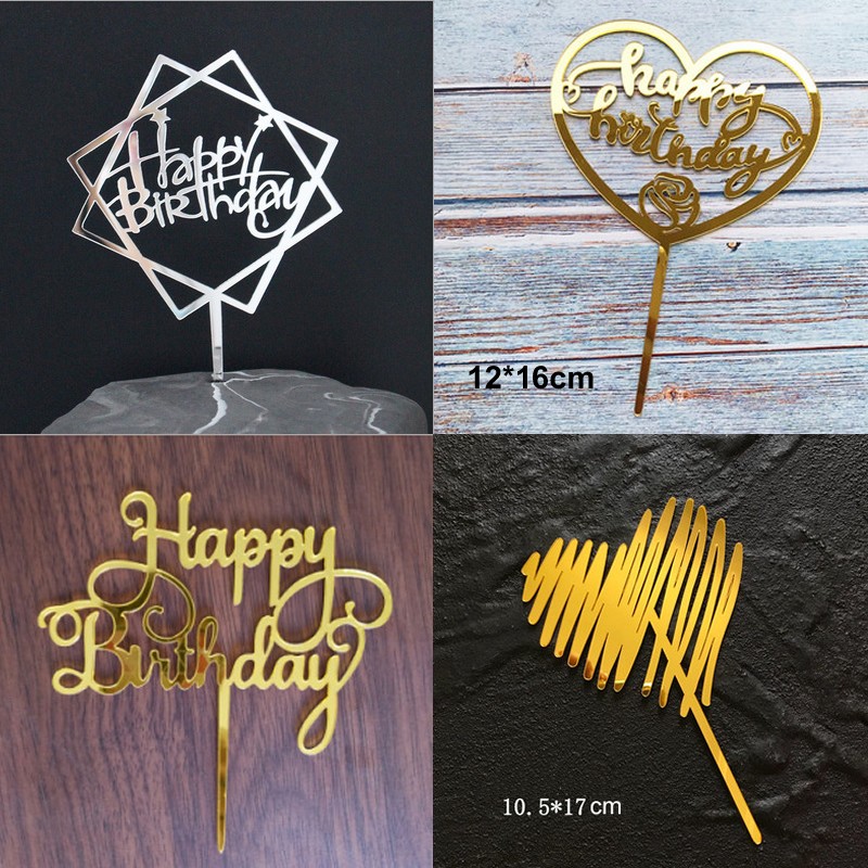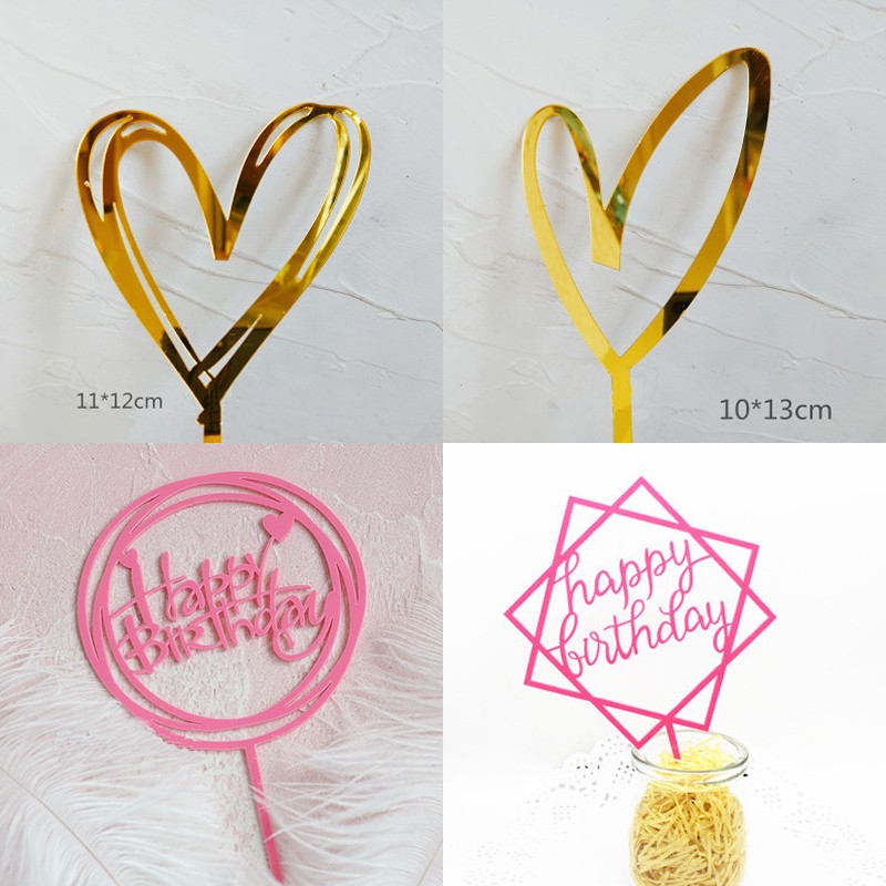 Gelukkige Verjaardag Liefde Vlag Cake Topper Acryl Brief Goud Zilver Cake Top Vlag Decoratie Voor Verjaardagsfeestje Bruiloft Benodigdheden