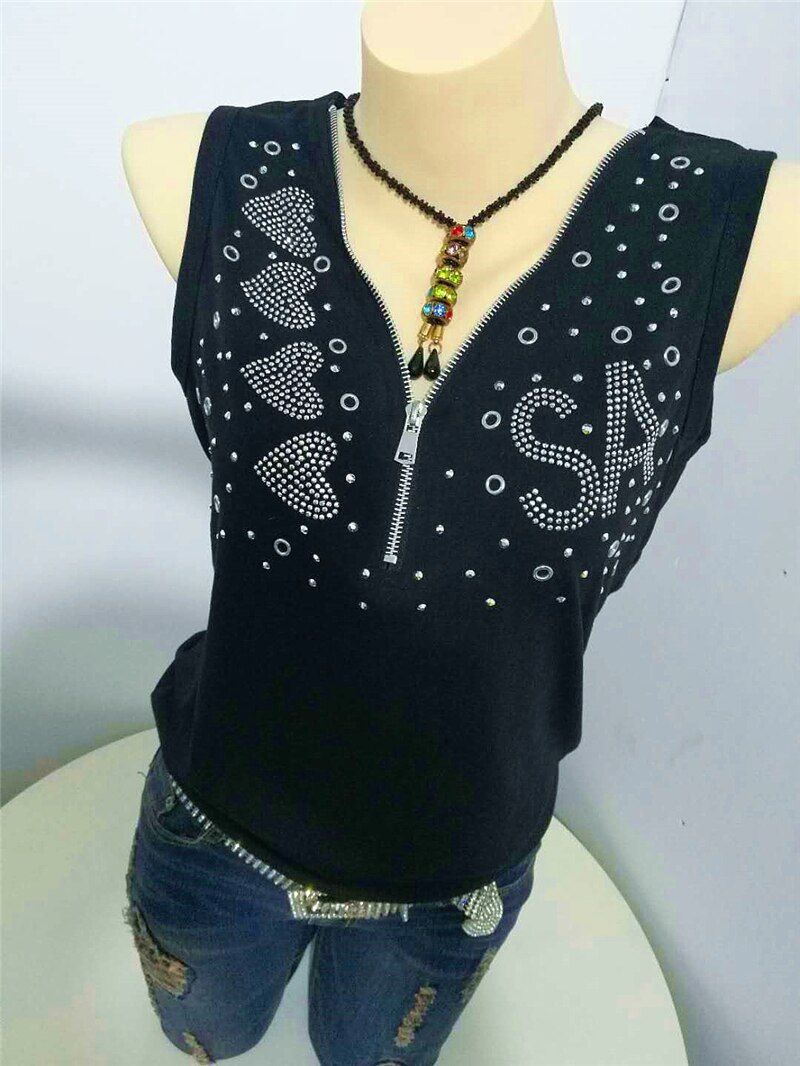 Harajuku Casual Sexy Tank Top Tee Fashion Diamanten T-Shirt Vrouwen Shirts T-Shirt Zomer T-Shirt Tee Shirt Vrouw Plus Size Tops