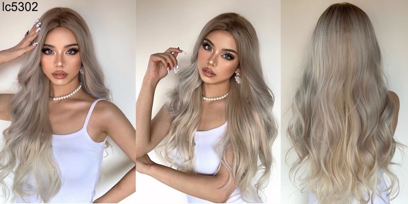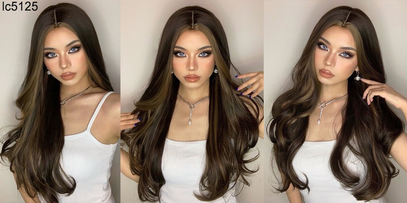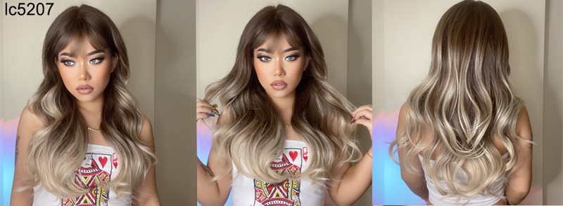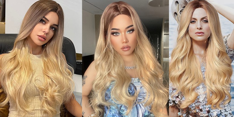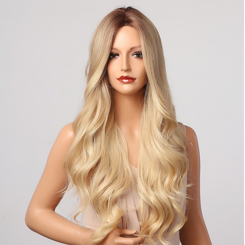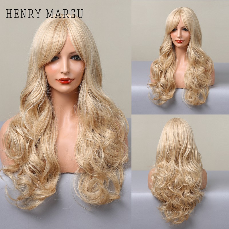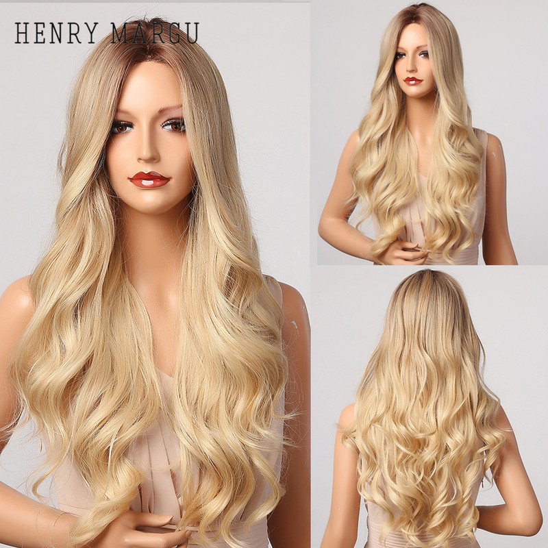 HENRY MARGU Ombre Bruin Gouden Blonde Pruiken Lang Golvend Middendeel Kostuum Cosplay Partij Synthetische Pruik voor Vrouwen Hittebestendigheid